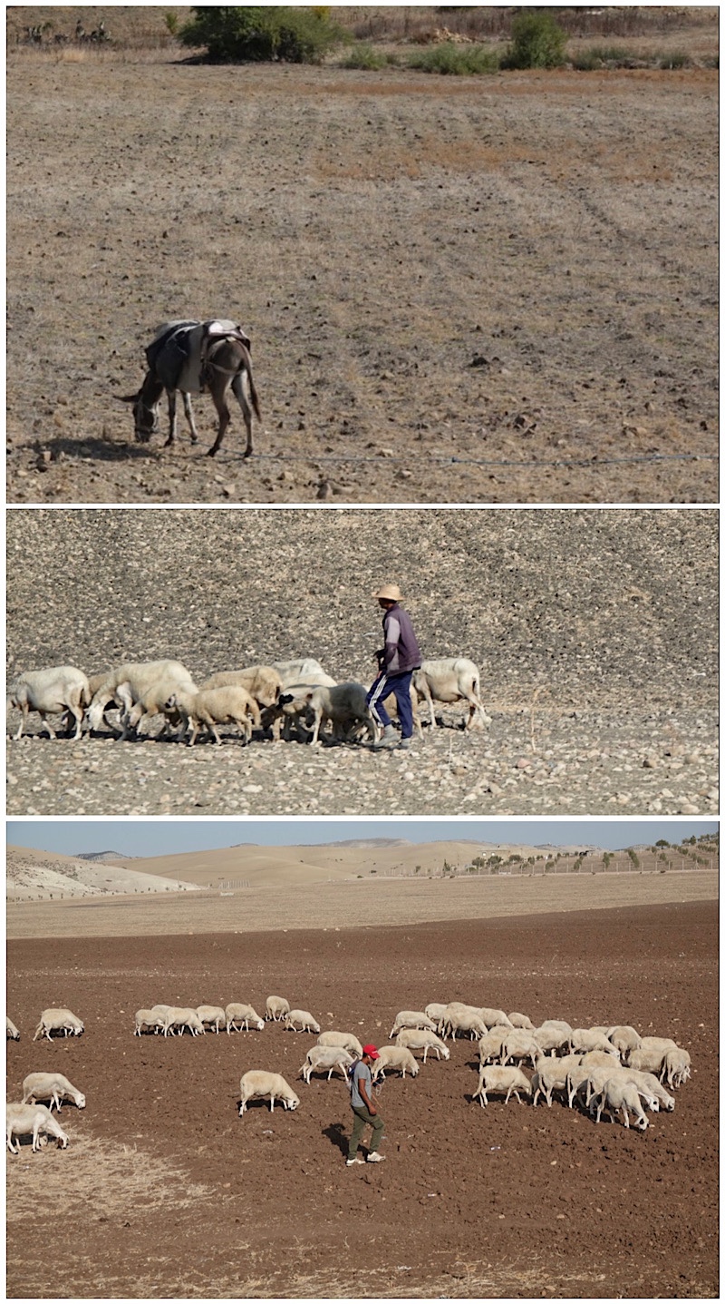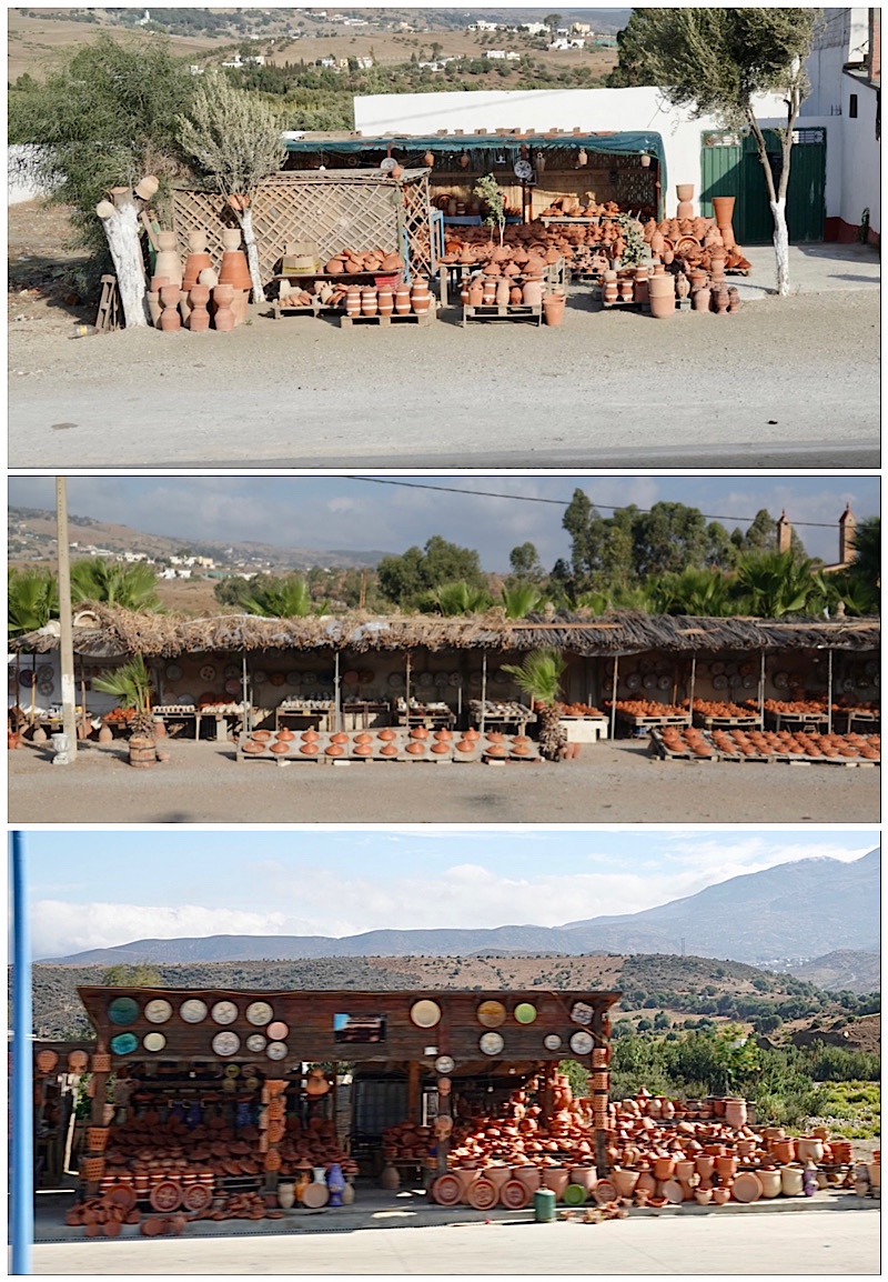Along the roadside were several large displays of Moroccan cookware for sale, but no shopkeepers , which made us wonder whether sales were done on the honour system.