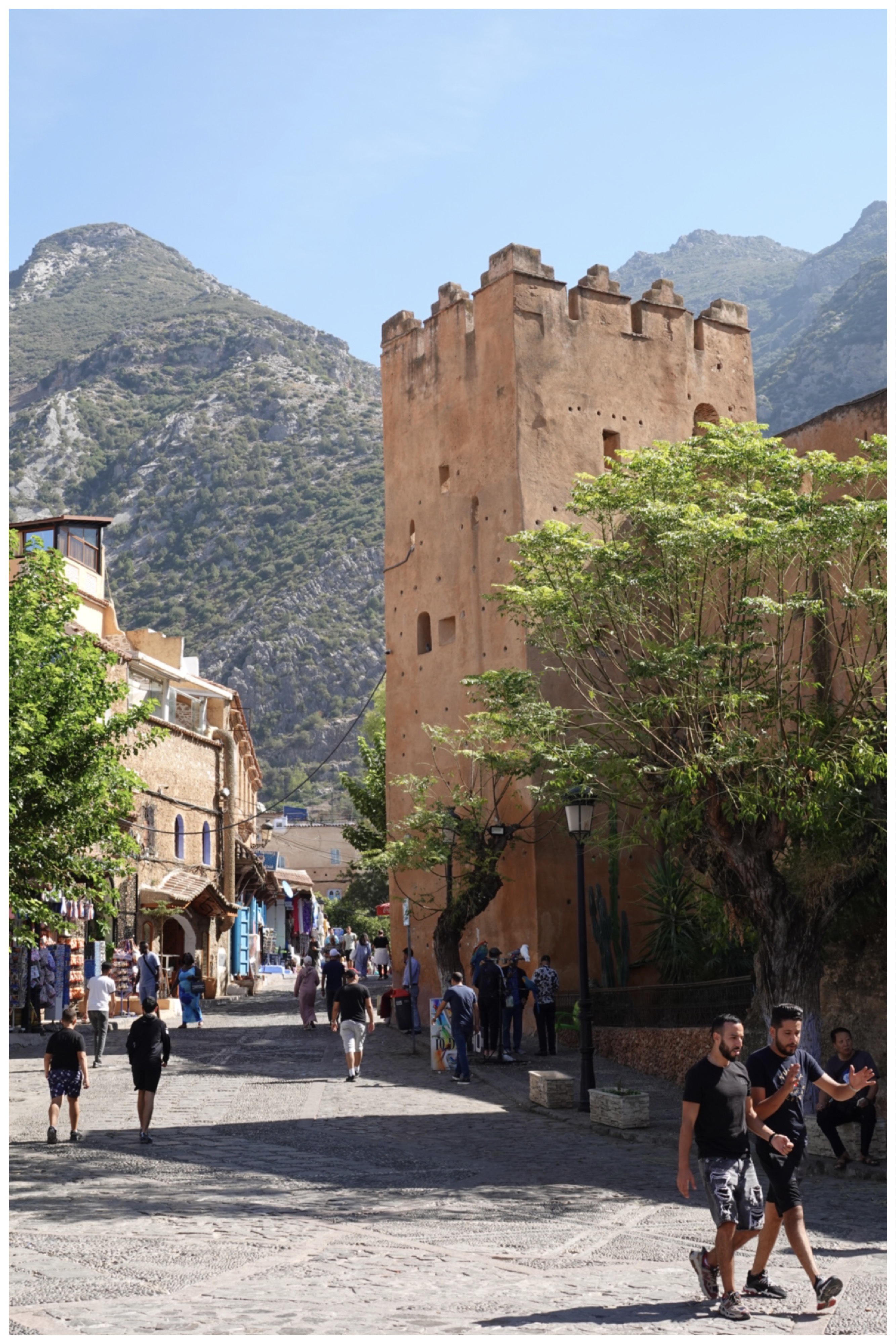 A kasbah is a fortified city, citadel, or walled community. A medina is an old town or town centre. In Chefchaouen, the medina is inside the kasbah!