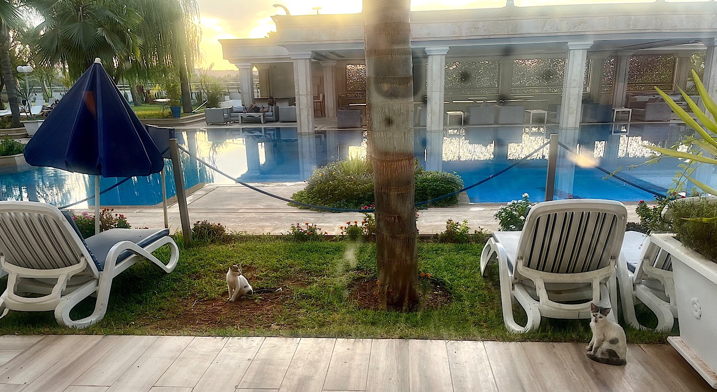 Our room is poolside, with its own patio that apparently comes with 2 cats! Unfortunately, we’ve been told not to pet any of Morocco’s many strays, since they’ve never been vaccinated.