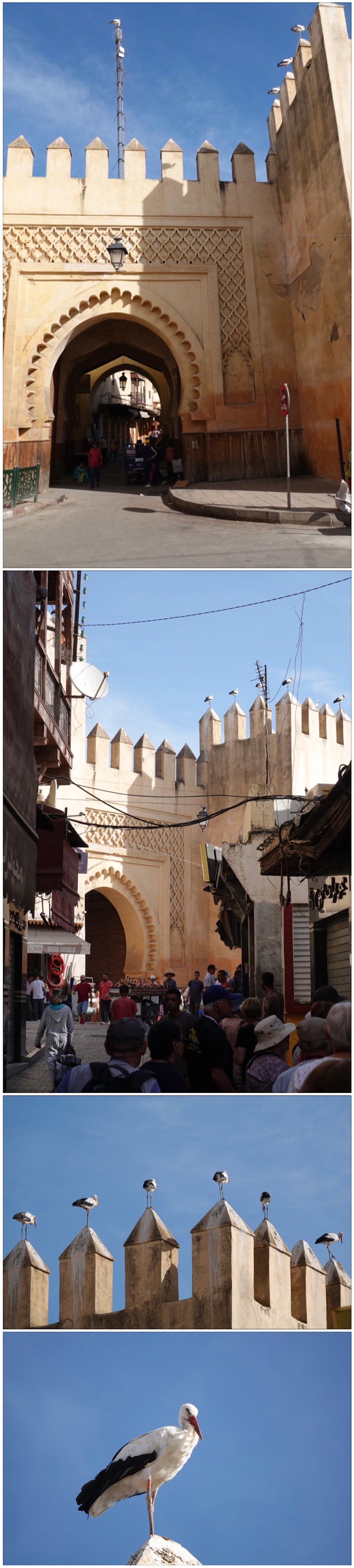 As we exited the gate leaving the Mellah, we noticed multiple stork nests and storks perching atop the crenellated walls!