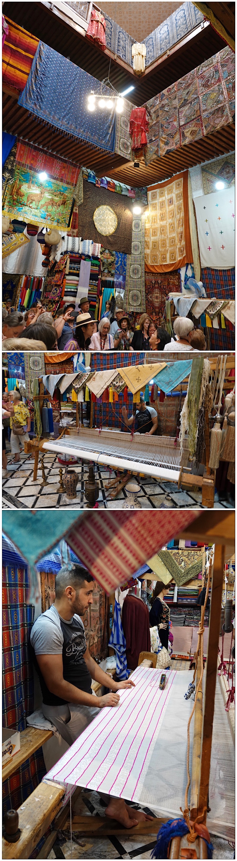 We stopped at a textile cooperative, where hand-made table linens, scarves, kaftans, bedding and more were being produced using cactus fibre alone and combined with wool, cotton, and other natural fibres. The items were beautiful, but very expensive.