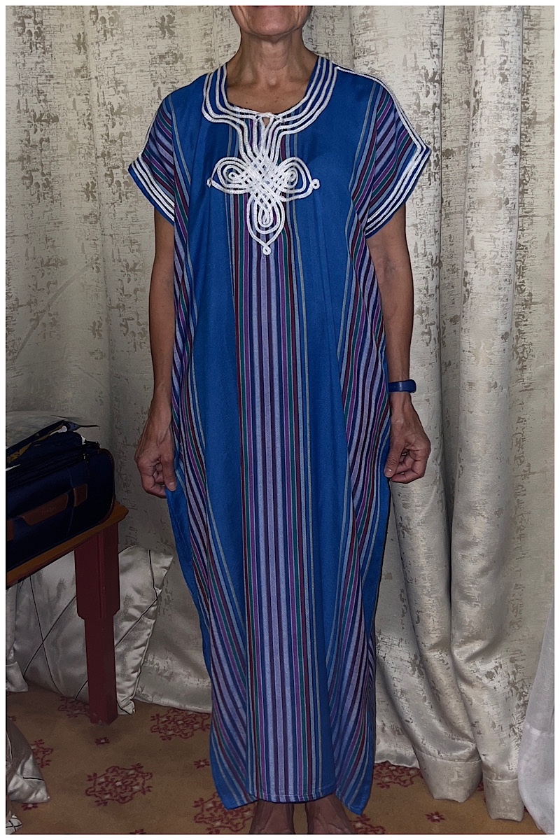 Despite Ted’s active discouragement, and Fouad’s determined insistence that we only buy artisan-produced items, I declined the $200 USD agave silk kaftans at the textile cooperative and bought a $100 Moroccan Dirham ($10USD) knockoff from the vendor outside the restaurant as we left. It may well be made in China (there’s no label), but I supported a local vendor, right? It may be the fastest exchange of money for goods on record given that Fouad resumed keeping us moving at a pace that precluded doing any window shopping. .