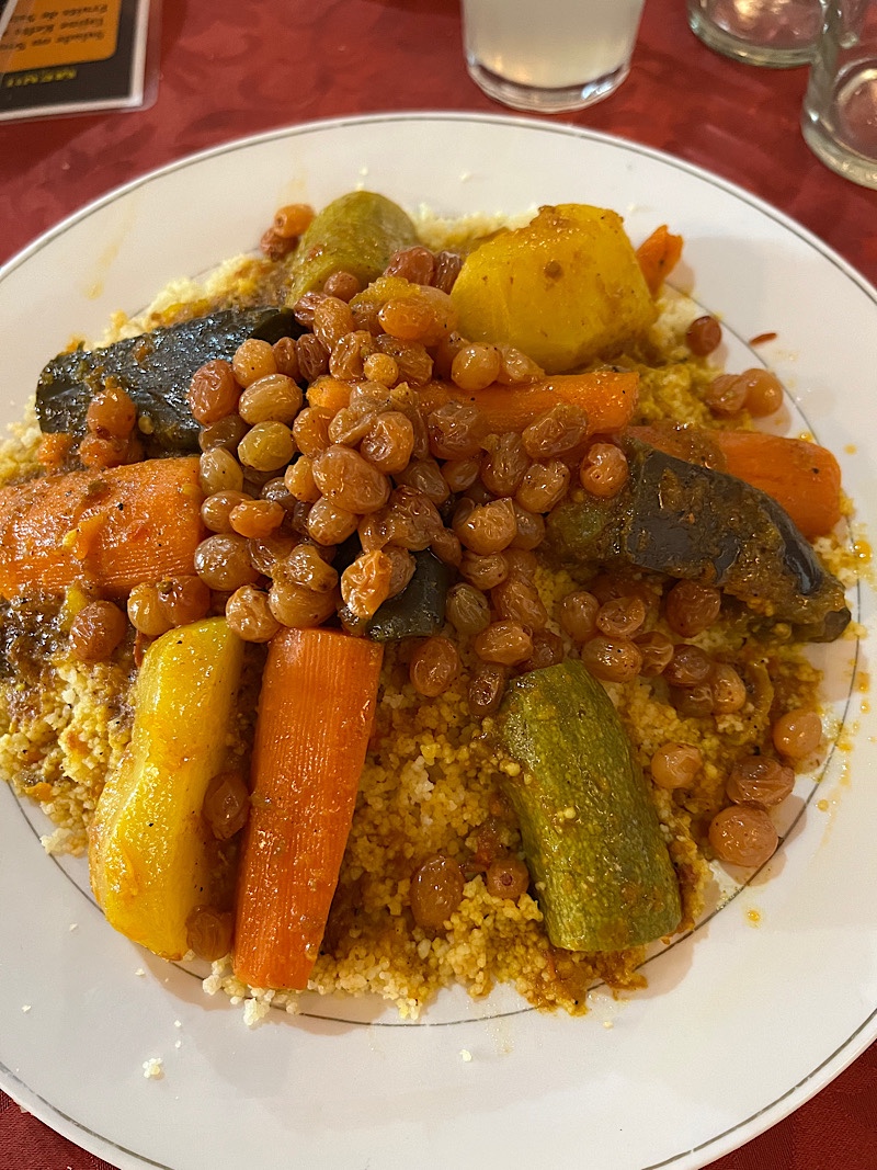 Our group’s first priority was lunch, which seems to be around 2:30 each day (hence morning ice cream). We ate at the lovely Les Jardins de Ouarzazate Hotel & Restaurant, where my vegetable couscous with raisins was outstanding.