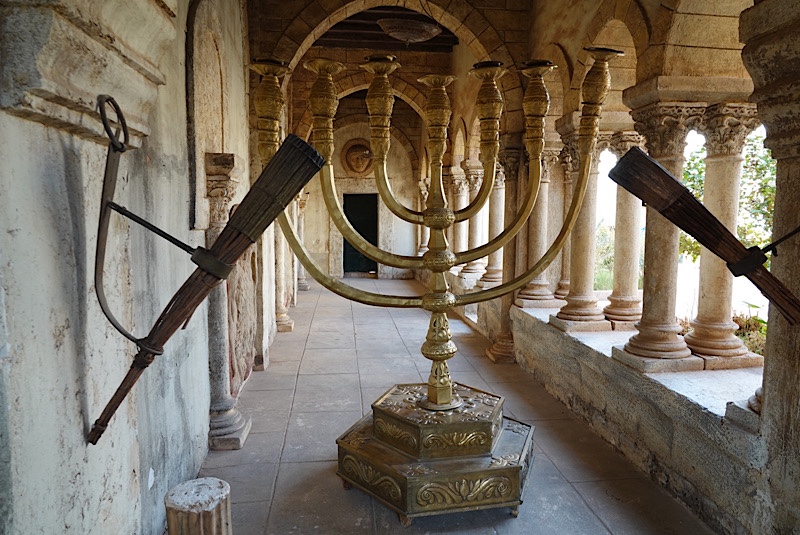 Unfortunately the site was damaged in last month’s earthquake, with cracks and partial collapses, and the risks of more, precluding tours. The photos below were taken from across the street.
