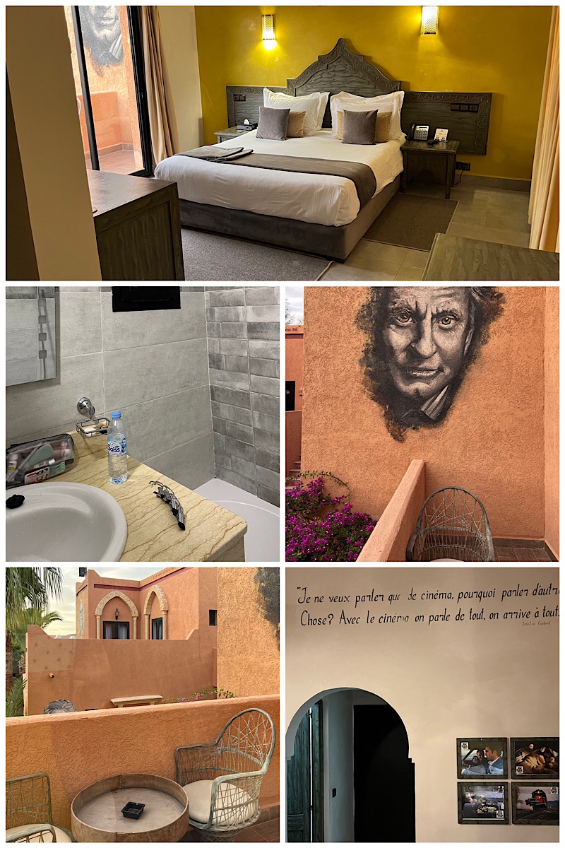 Our hotel tonight was supposed to be the Ksar Ighnda, whose website refers to it as “a palace of 1001 nights”. Instead we’re at the beautiful and modern Oscar Hotel, right beside another movie studio, and filled with posters from movies shot here. Locals call this area “Ouarzawood”, Morocco’s version of Hollywood. It’s really quite stunning, and the dinner buffet was the best we’ve had to date.