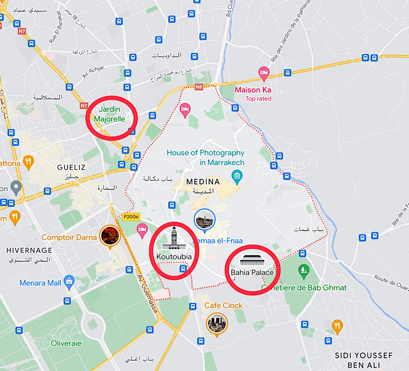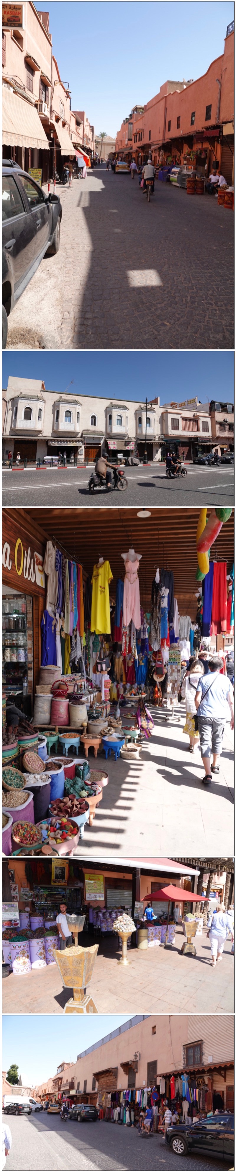 Marrakesh is a city in 3 sections: the Medina (old city) , the Ville Nouvelle (the new city dating to the French occupation), and the Gueliz (derived from the French word “eglise”, church). While we drove past some of the upscale shops and high-end hotels along Mohammed V Avenue in the new city, we really only visited sites within the medina.