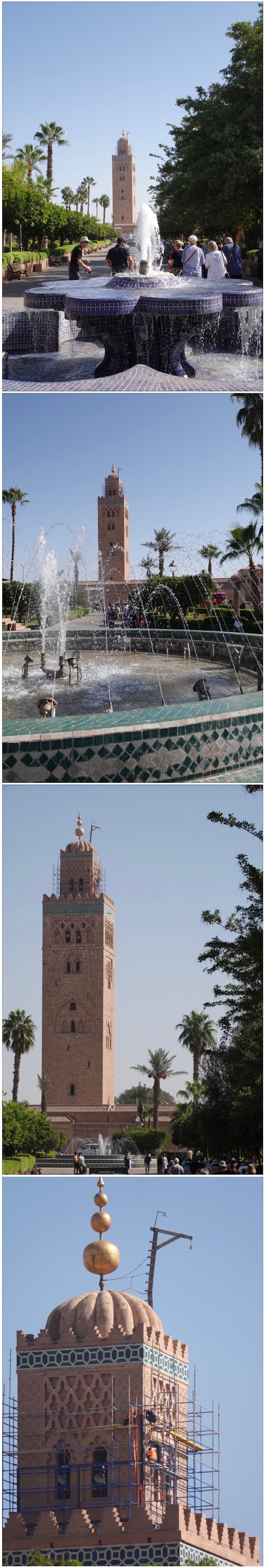 Then it was on to the 12th century Koutoubia Mosque, the largest mosque in Marrakech. Its name comes from the Arabic word for bookseller, since the mosque is located where a huge book market once stood.