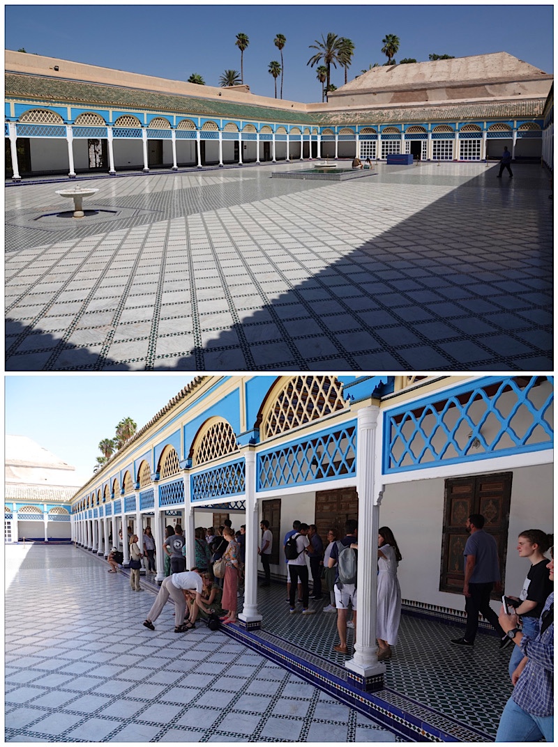 The approximately 20 km of city walls with 19 gates date back to the early 12th century, laid out by the Almoravid dynasty which founded the city in 1070 CE as their new capital. They look surprisingly pristine; repairing damage from this year’s earthquake was a priority in order to have the city centre ready for the IMF conference currently in progress.