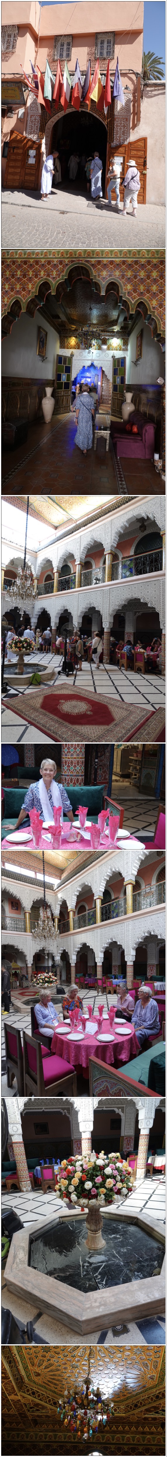 We had an included lunch today near the palace (a small gesture to assuage us for all the snafus so far). Lunch was Moroccan salad and tagine. Again. Good, but becoming boring. Not so the venue, which was just stunning.