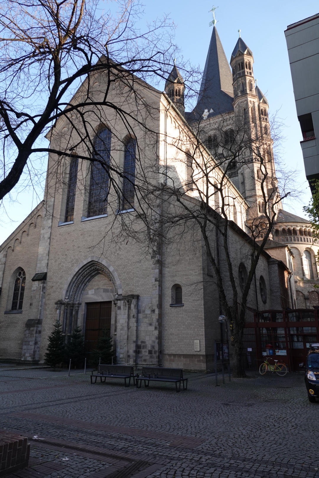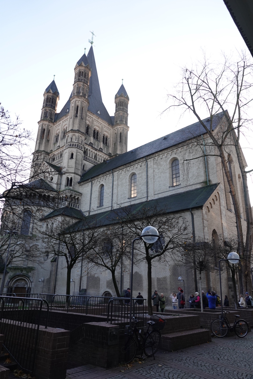 Neo-Romanesque Saint Martin’s was completely rebuilt after WWII. On our last visit we toured the Roman ruins underneath it, so did not go inside today. Episode 354 . It is the oldest church in Köln, and was the main church before the Dom’s completion,