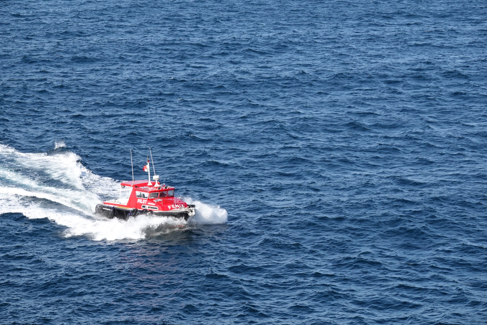 …and headed onto our balcony to catch a glimpse of the pilot boat which would take us to our anchor point…