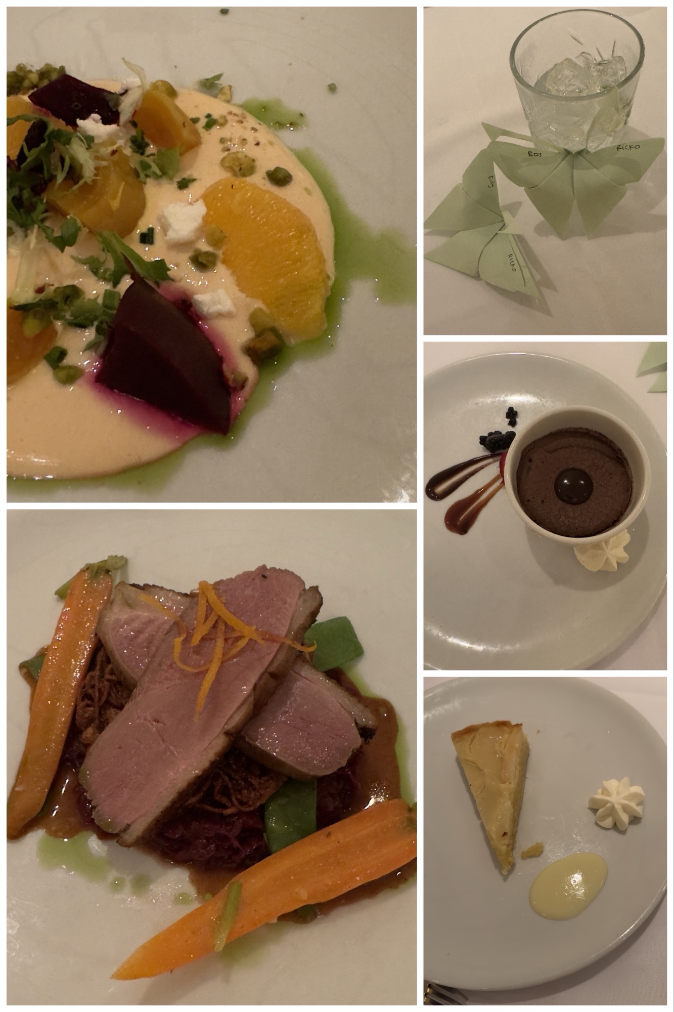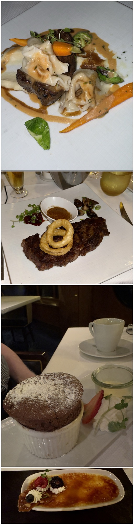 We had dinner reservations in the Pinnacle Grill, one of the ship’s extra cost specialty restaurants, one dinner at which came as part of our “Have It All” cruise package. Pinnacle specializes in steak, but on our Alaskan cruise we were disappointed by its inability to deliver a proper medium rare. Recent comments in the ship’s Facebook forum indicated that inconsistency was still the norm, so we had some misgivings going in for this second visit, but… dinner this time was perfection, as was our very personable waiter, Arif, who had the timing of courses down to a fine art.