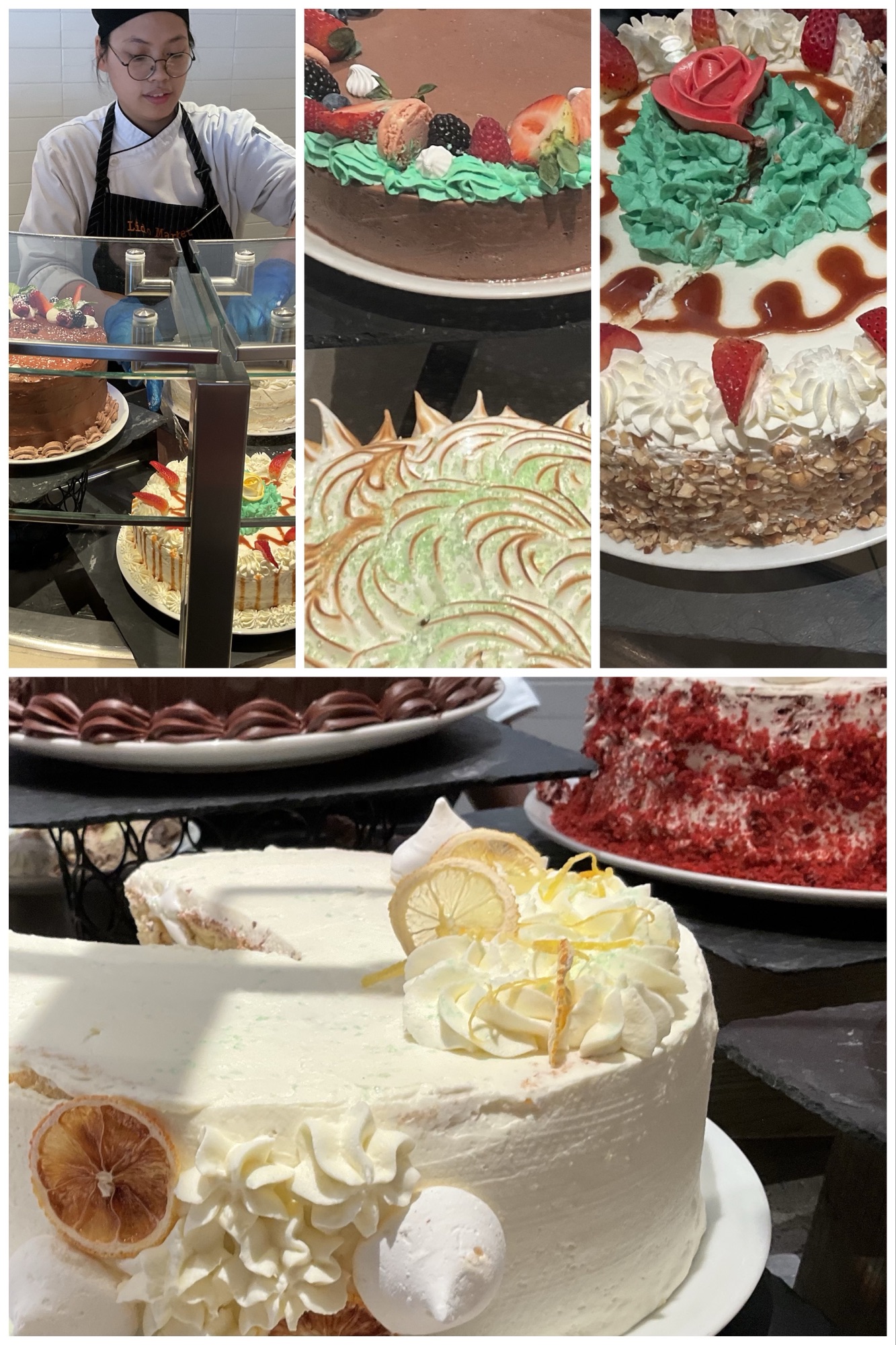 Today, my “itinerary” included the exctalk A City On The Sea (a behind the scenes look at life on our cruise ship, from engine room through laundry, galleys, and front of house, to navigation) at 10, a cake display in the Lido Market at 11:30, and an afternoon “Tech for Travellers” talk about capturing, editing, and posting photos, which I hoped would give me some new hints for improving our blog. Ted took in the morning talk with me, and then we headed our separate ways until it was time to get ready for dinner.