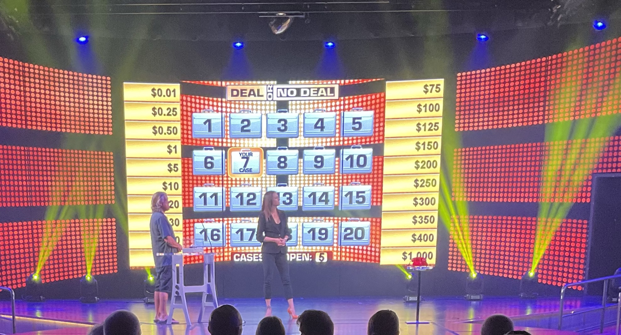 Ted and I both popped into the World Theatre to watch passengers play Deal or No Deal for up to $1000 for the on-stage players, and a chance for a free cruise for those who purchased play cards but who were not chosen to be onstage.