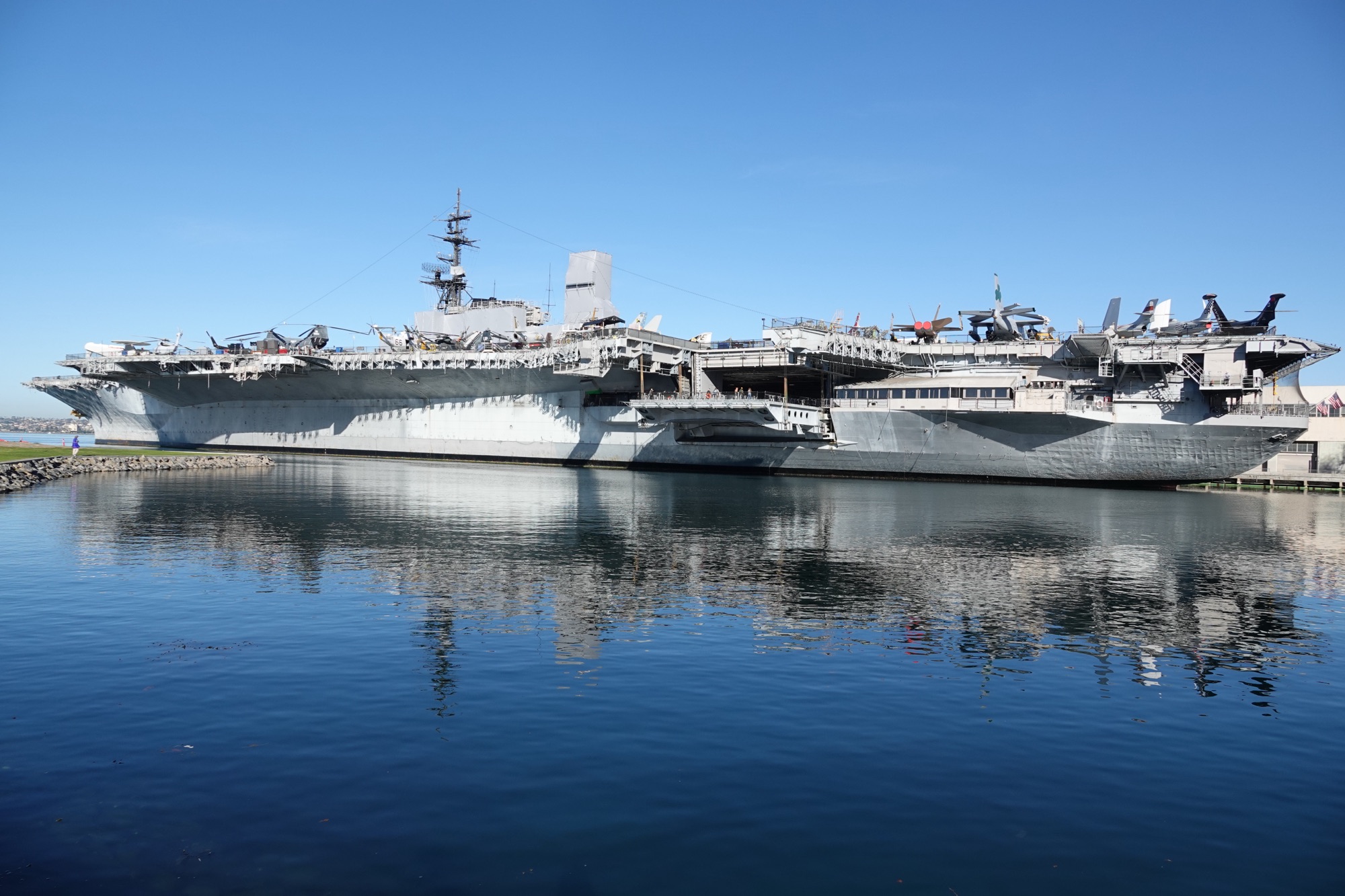Despite the fact that we’re continuing on to Hawaii, we had to disembark by 9:30 and re-board after 11:30 today, so we took advantage of the glorious sunny weather to stroll the Embarcadero waterfront area of San Diego. The area has changed quite a bit since we last had an extended visit here about 20 years ago, with new restaurants, monuments, and updated parks, although the massive aircraft carrier USS Midway is still the dominant feature.