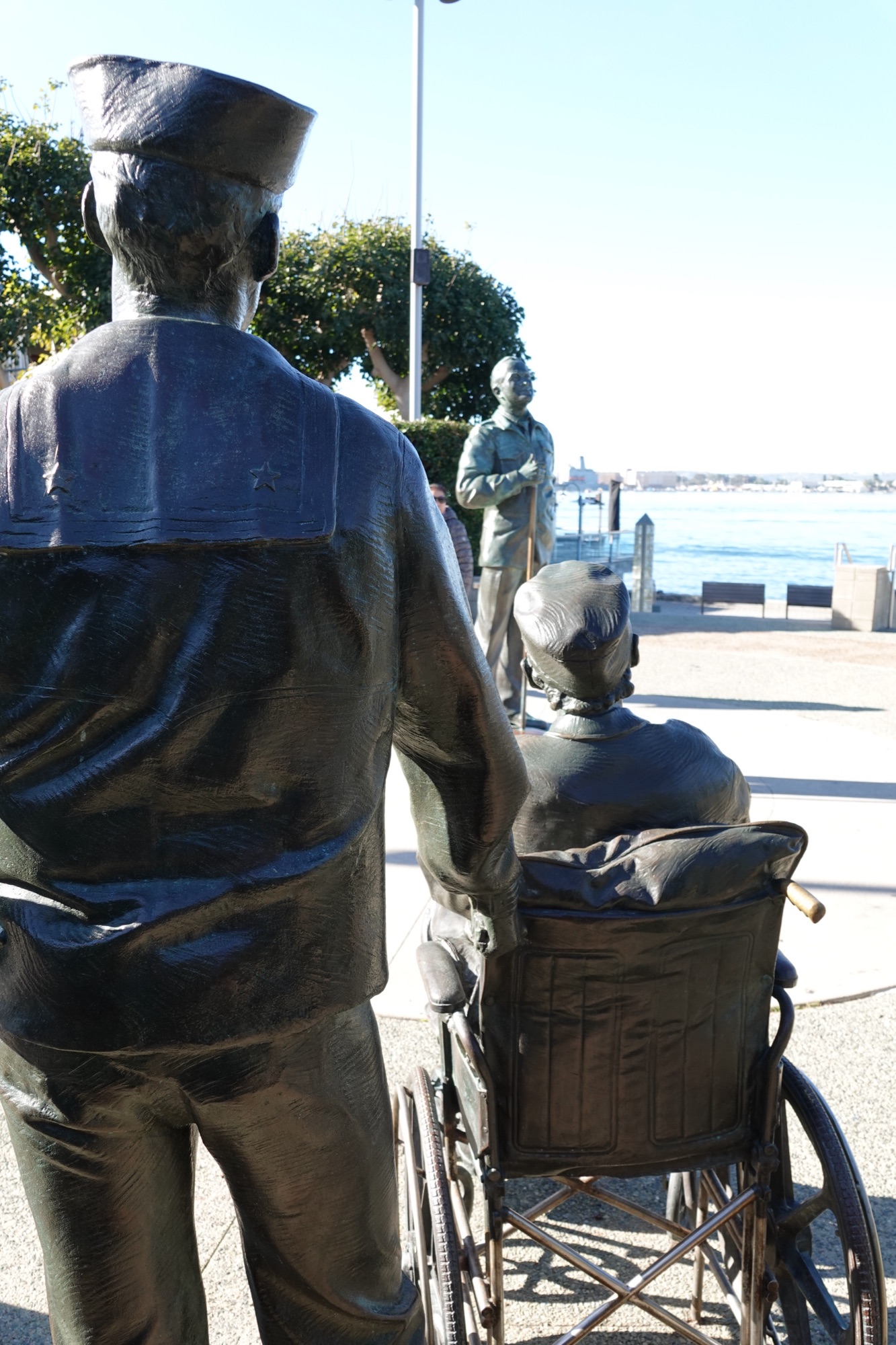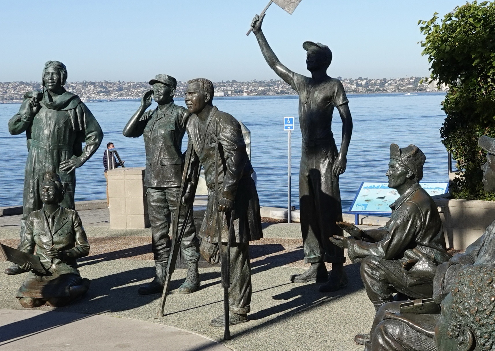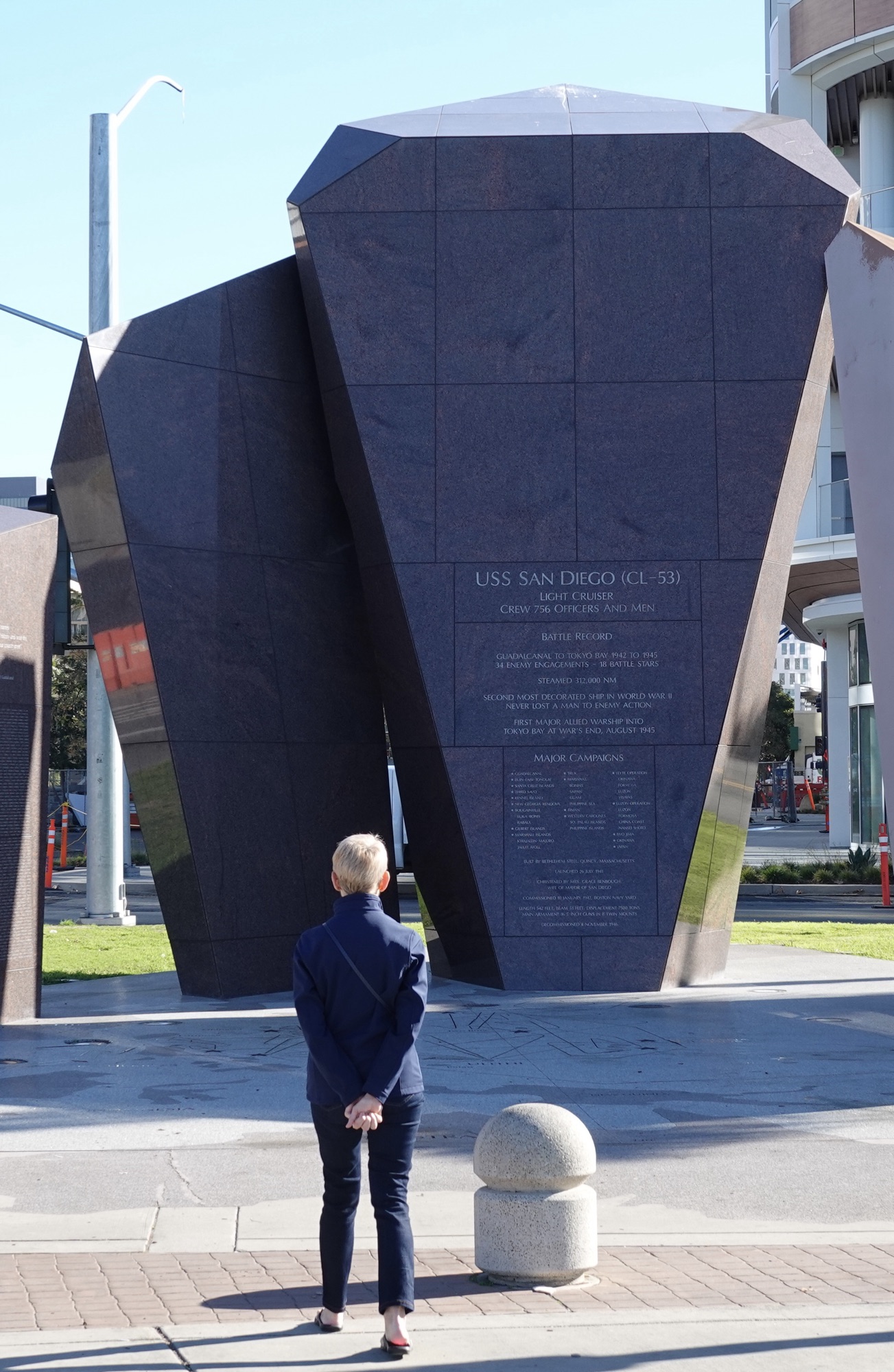 New since our last visit: “Embracing Peace” towering 25 feet tall; a tribute to Bob Hope and his many USO tours entertaining the troops; and a monument to the USS San Diego.