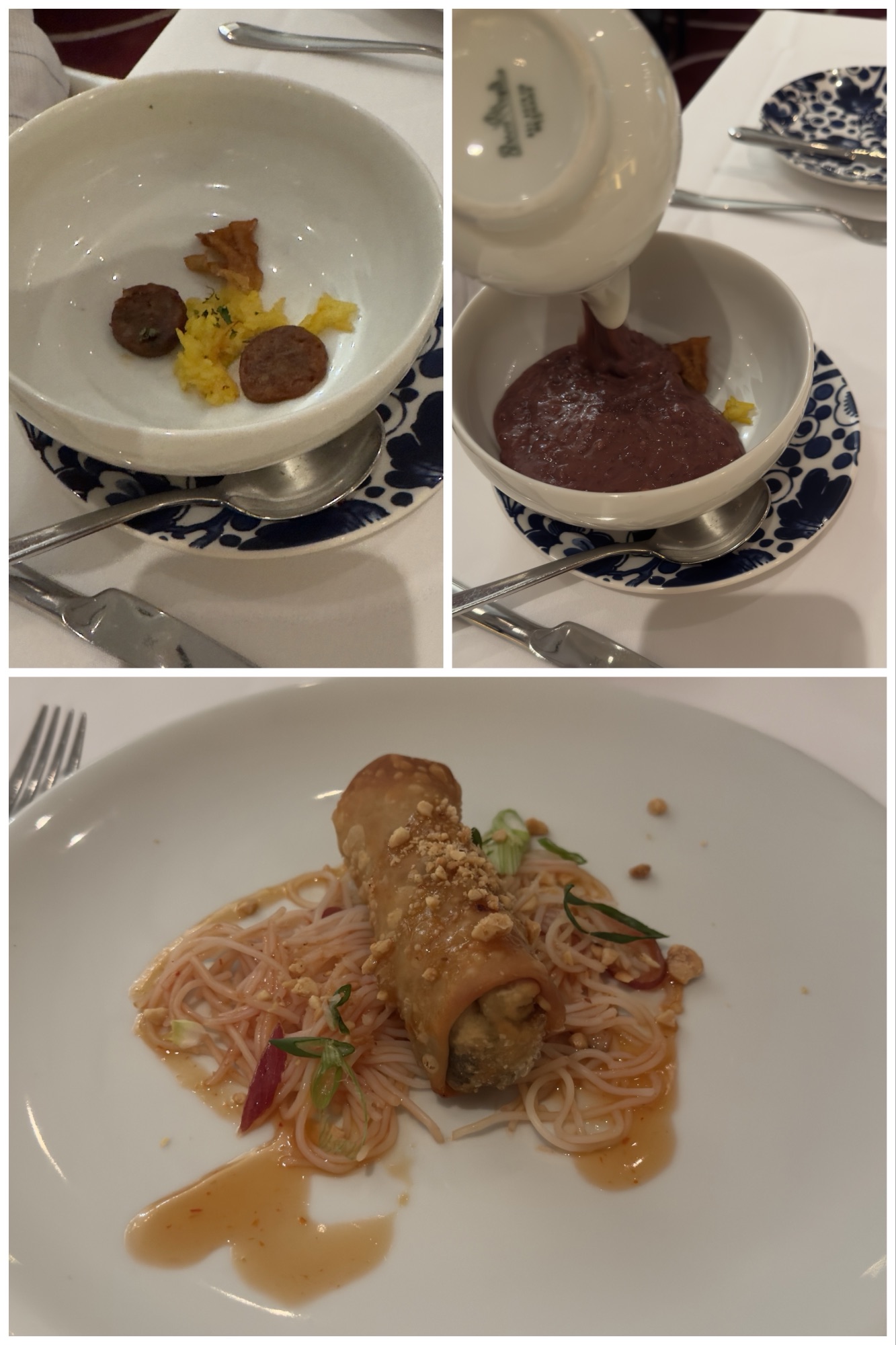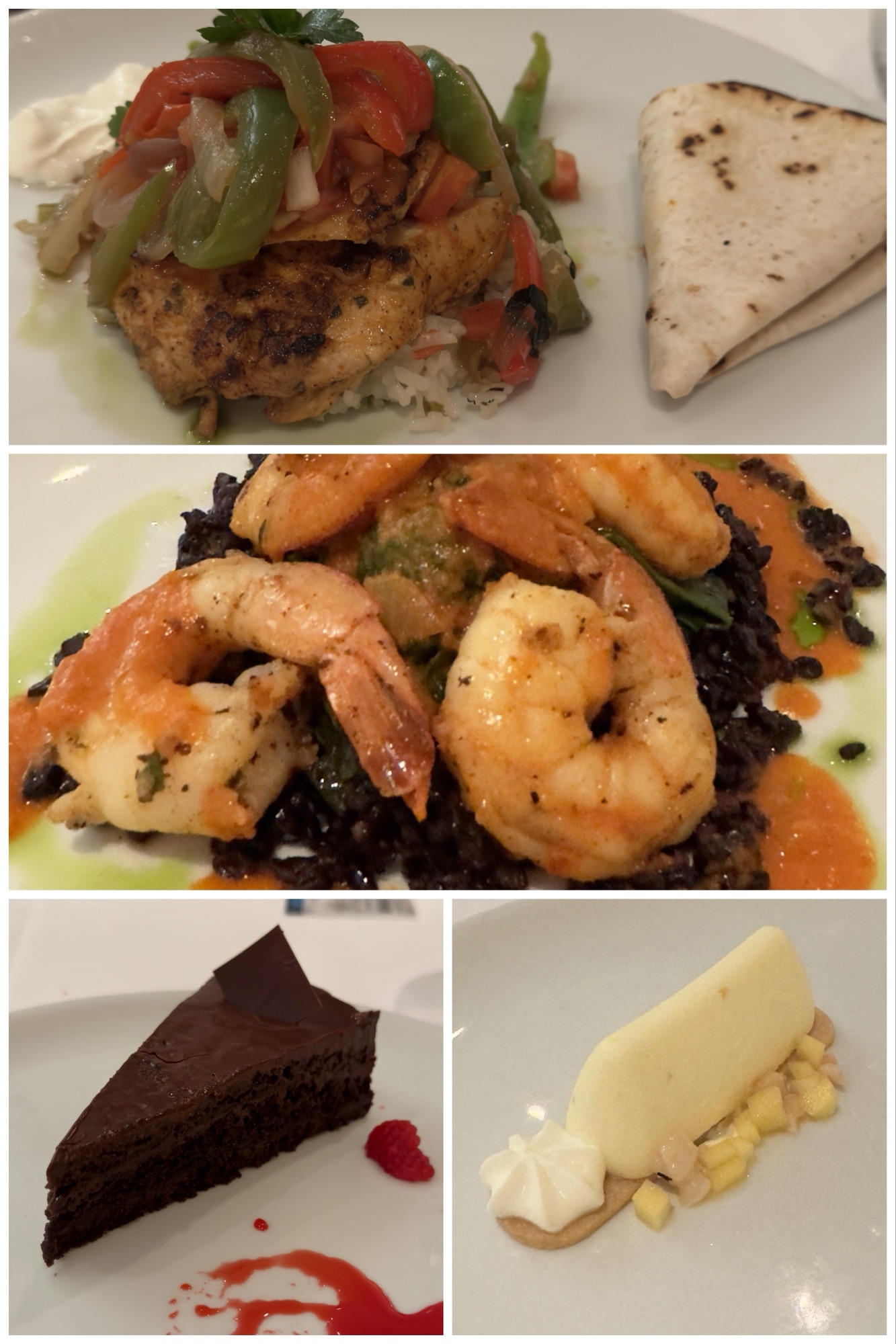 Having settled my stomach with a pill before my nap, I was able to enjoy dinner despite being on deck 9 on a rocking ship… and it was our best dinner yet!! Not only was the food excellent and the pacing just right, but our server Eula and the restaurant hostess Denise were exceptional. Added to that, Chef came out to check on every table.