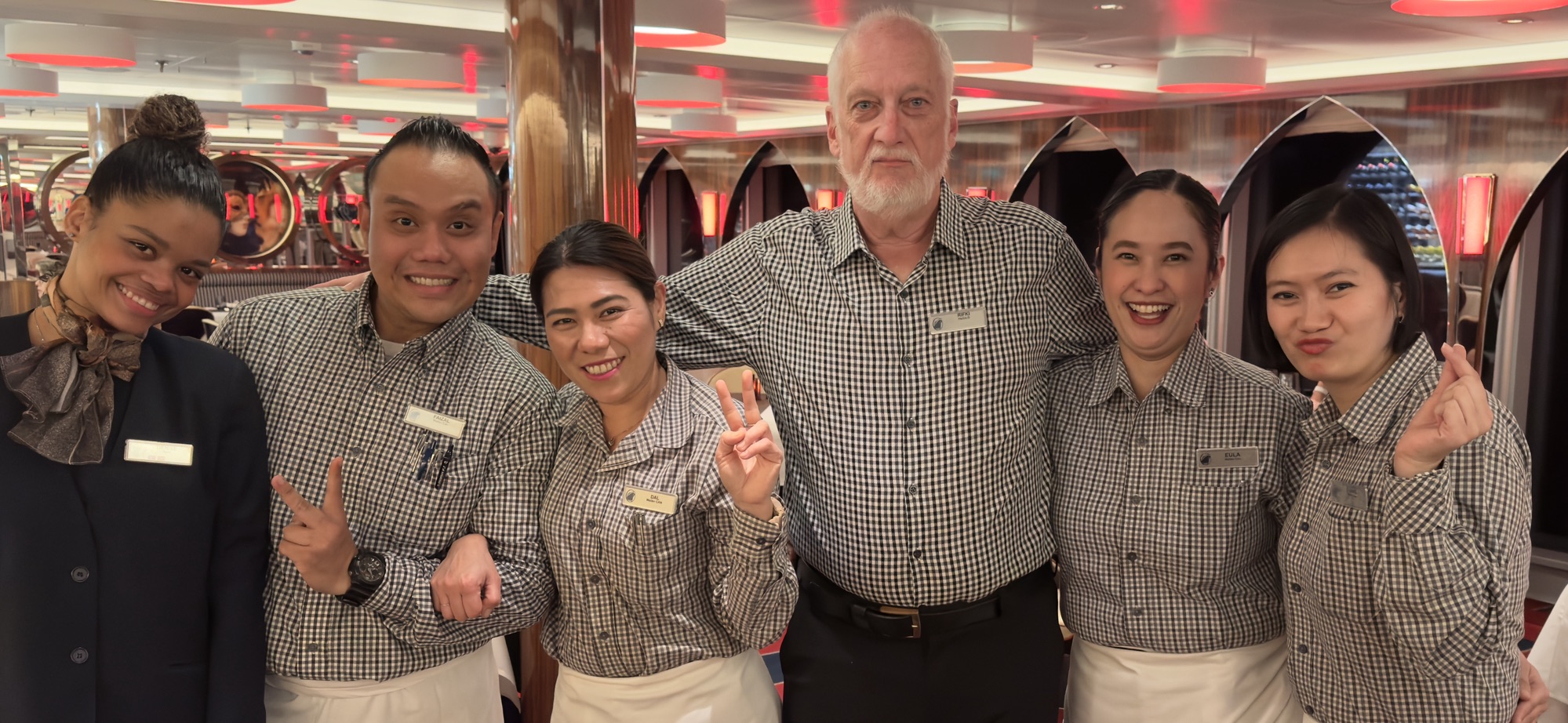It was fascinating – and very entertaining – to hear the very roundabout route he took to his now 31-year career with HAL, from studying civil engineering in his homeland of the Netherlands, to a stint as a plumber’s assistant in the south of France, to working hospitality in resorts on Aruba and Saint Martin, to joining his first HAL ship only because a friend was doing it. Naturally, he did have to go back to school to get a BA in Hospitality.