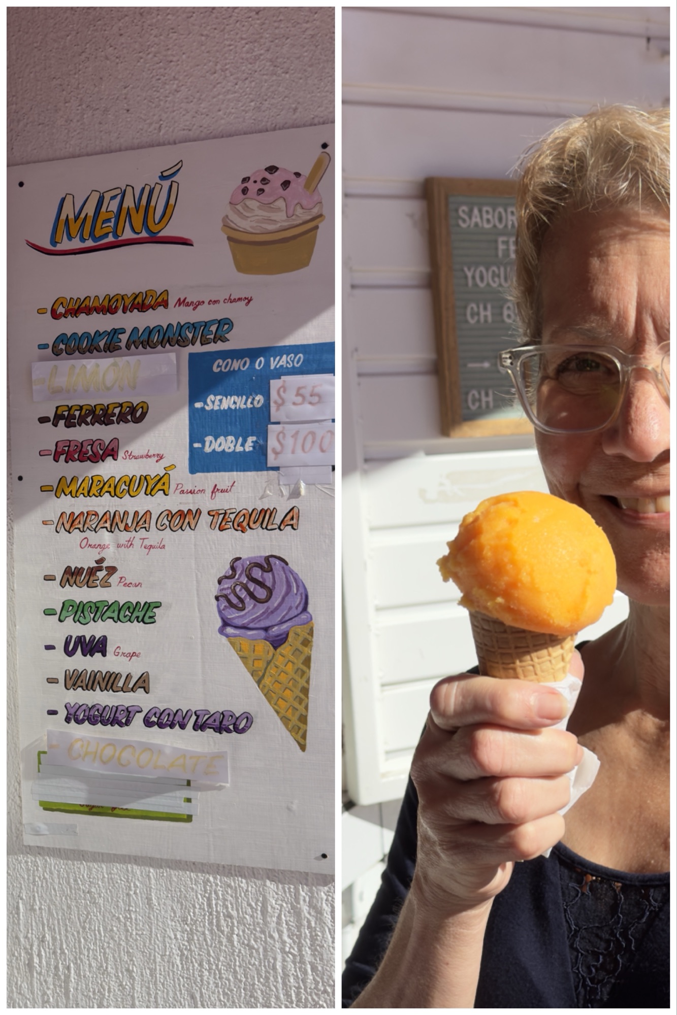 After all that heat and deliciousness , there was only one more thing to say: “necesitamos helado!” (we need ice cream!). So off we went to find the perfect ending to an excellent lunch: helado naranja con tequila – orange and tequila ice cream!!