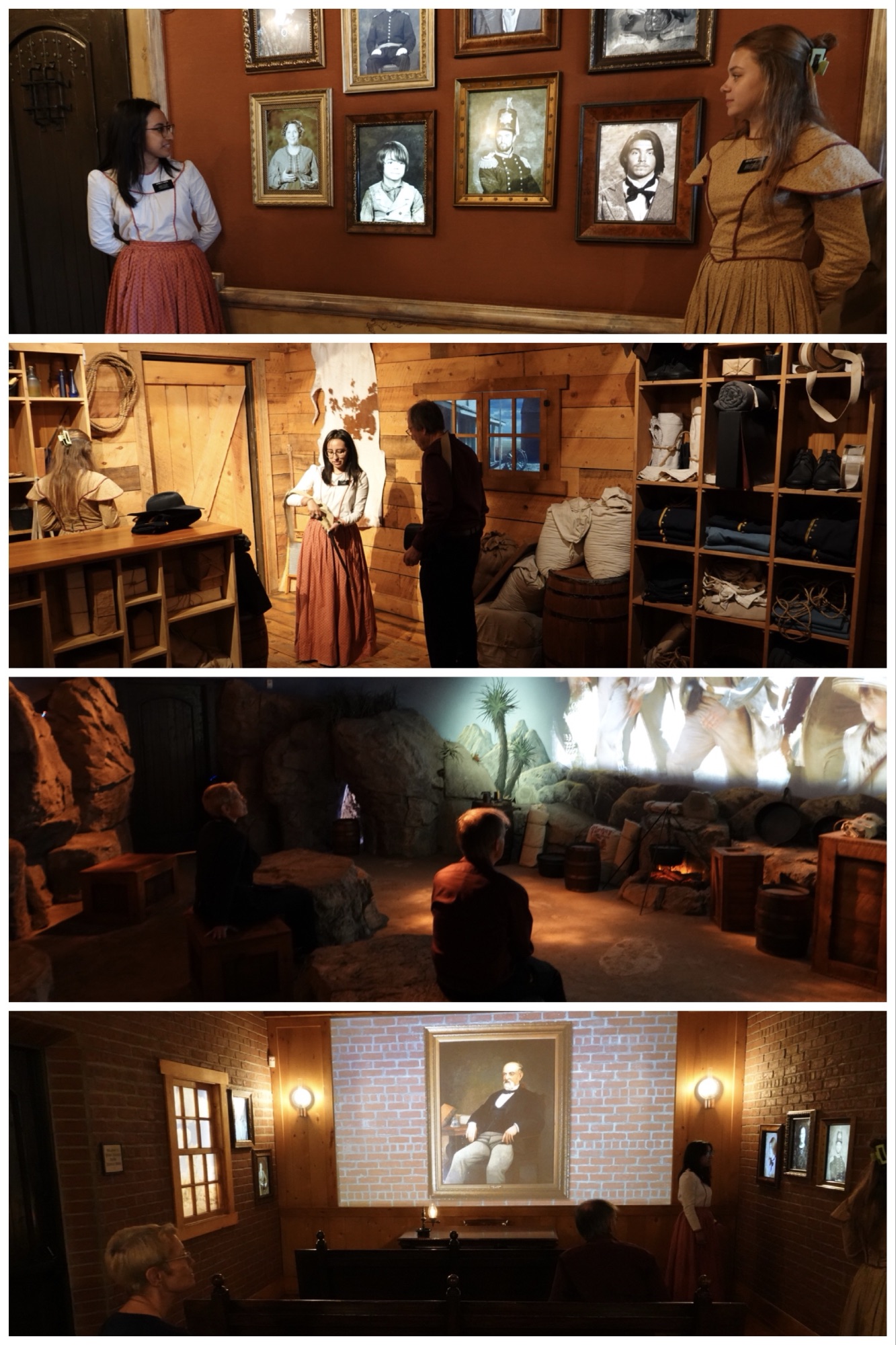 We really enjoyed the presentation. Not only did we learn something new, but we were really entertained. The way the videos “spoke” to us, through windows and paintings, and “moved” from room to room, was worthy of a Disney ride, only on a very much smaller scale. We even got “shaken” on our wooden crate seats when our “camp” was stampeded by longhorn cattle!