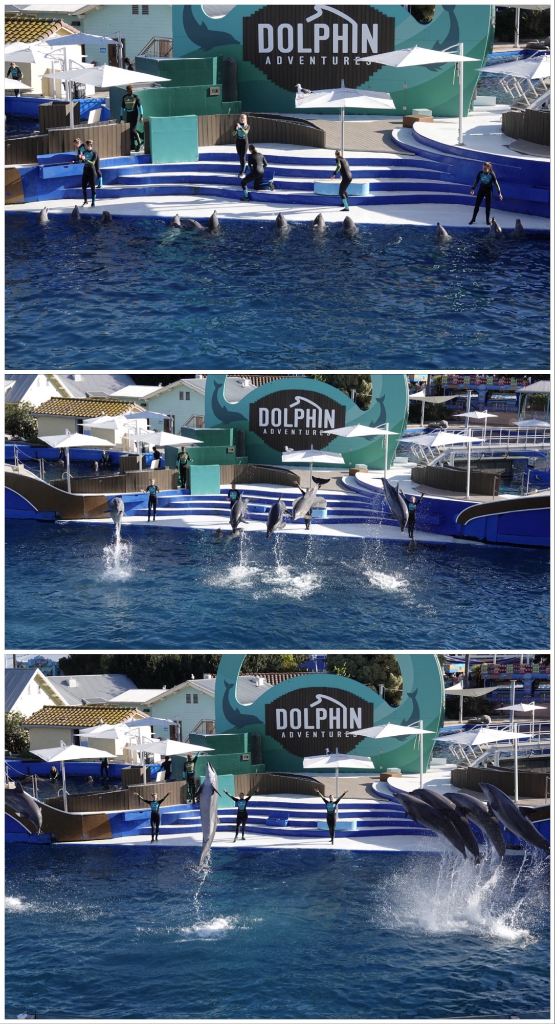 After a short break for a lunch of smokehouse ribs and fries – part of our meal package – it was time for another presentation: the Dolphin Adventure, featuring 12 bottle-nosed dolphins and two pilot whales.