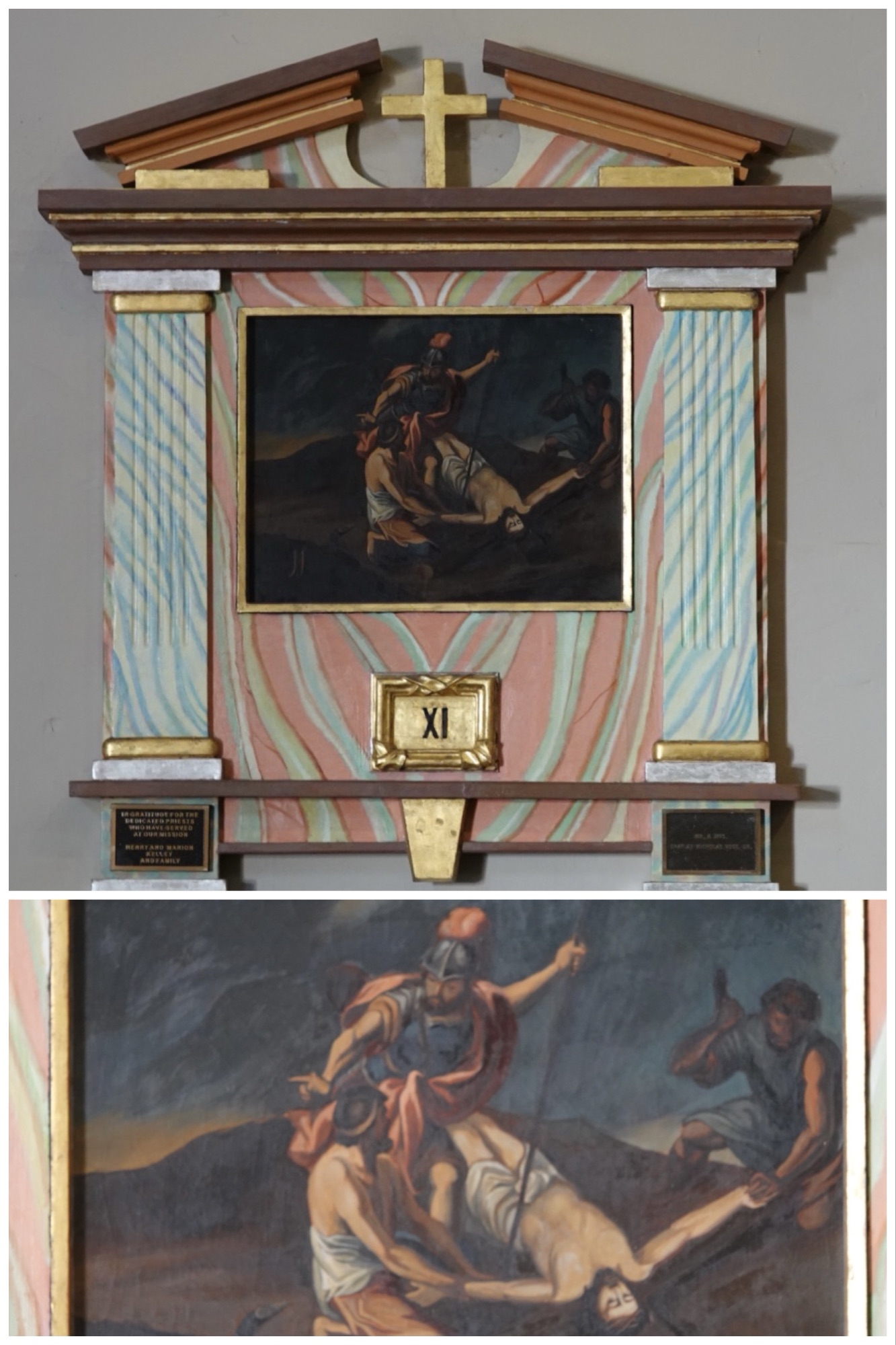 Not only the altar area, but also the side walls of the church had some interesting pieces. The 14 Stations of the Cross looked really old, but that is by design. They are 20th century copies of the originals that are at Mission San Luis Rey.