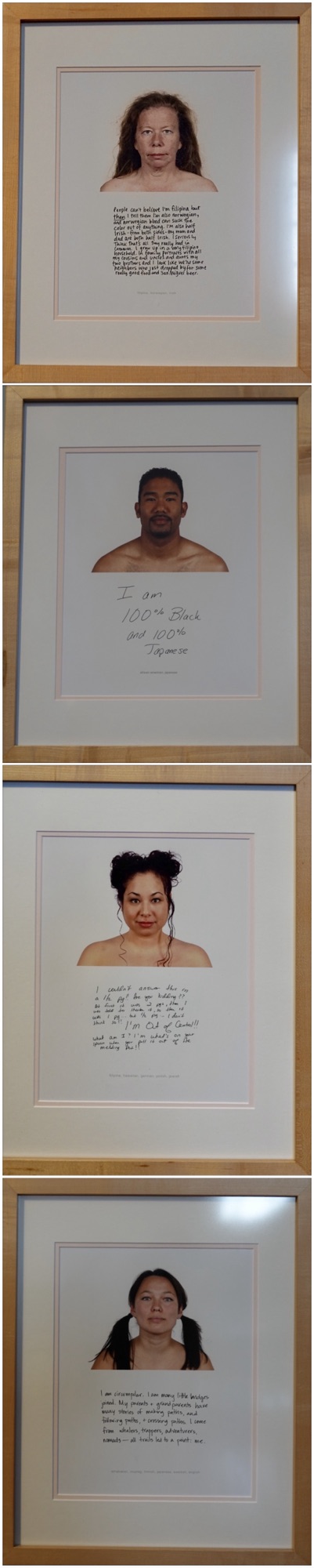 More than 1100 people participated in the HAPA project, each agreeing to be photographed from the shoulders up, with no clothing visible, and then describing their identity in a single paragraph. The descriptions were surprising, thoughtful, and funny. One man wrote simply, “I’m a grown man who just removed my clothing for a complete stranger.”
