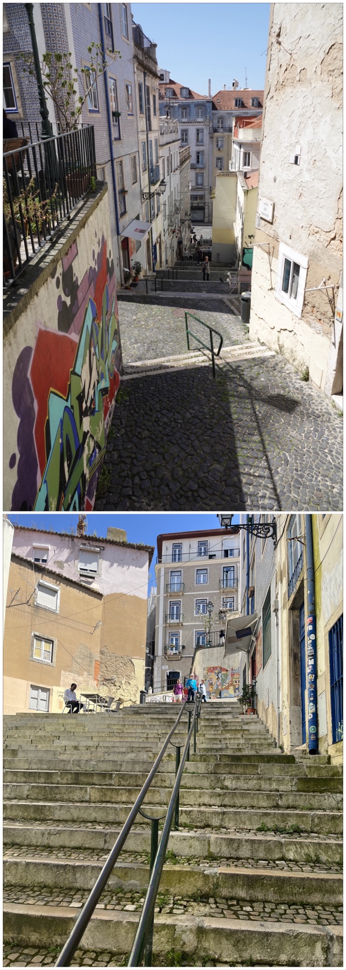 In stark contrast to Alfama, the streets of the “new” city are wide and straight, and serviced by streetcars, although there is no shortage of steep hills, and most of the streets are still cobblestone with patterned limestone and basalt sidewalks.