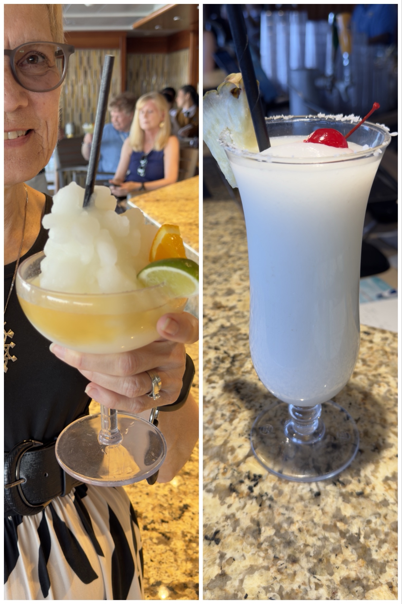 We didn’t need dinner after our big lunch, but did indulge in some refreshing frozen cocktails during the sailaway.