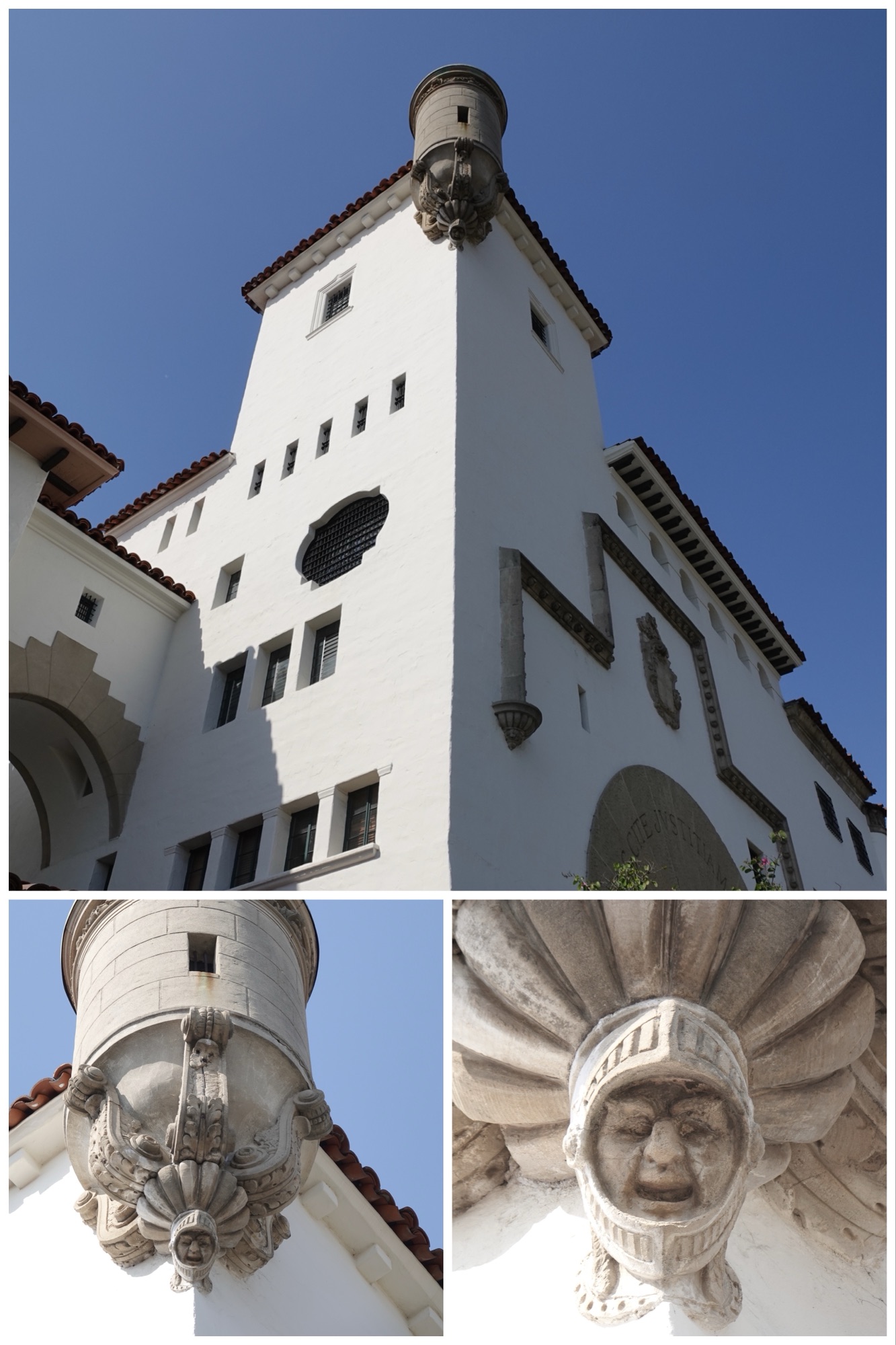 The courthouse was built to look like an Andalusian castle, with its mural room set up like a throne room. This is the only courthouse in the US that doesn’t look like an imposing courthouse, and that’s largely because of the wealthy Santa Barbarans. A few of them had built Andalusian “farmhouses” (aka mansions), and the style became the sine plus ultra of high class in the city. Unfortunately, a farmhouse was not deemed appropriate for a courthouse, but a castle was perfect! Our docent described the building’s design as “just fun”.