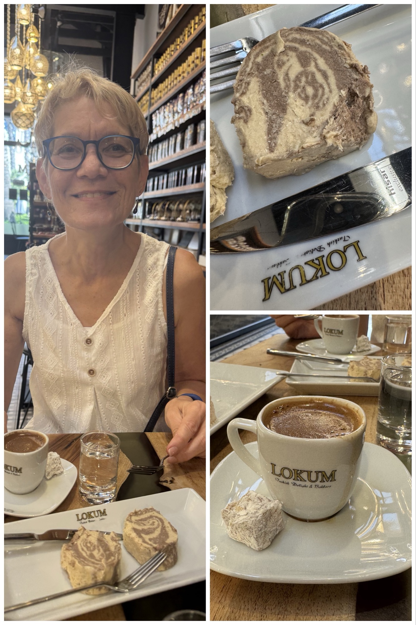 After leaving the courthouse and all that Andalusian, southern Spanish flavour, we stopped for a quick rest and a bite to eat at Lokum Turkish Café, drinking thick Turkish coffee and eating rosewater,lemon, honey and pistachio Turkish delight and marbled chocolate halva. Halva was a special treat throughout my childhood, so it always makes me smile.