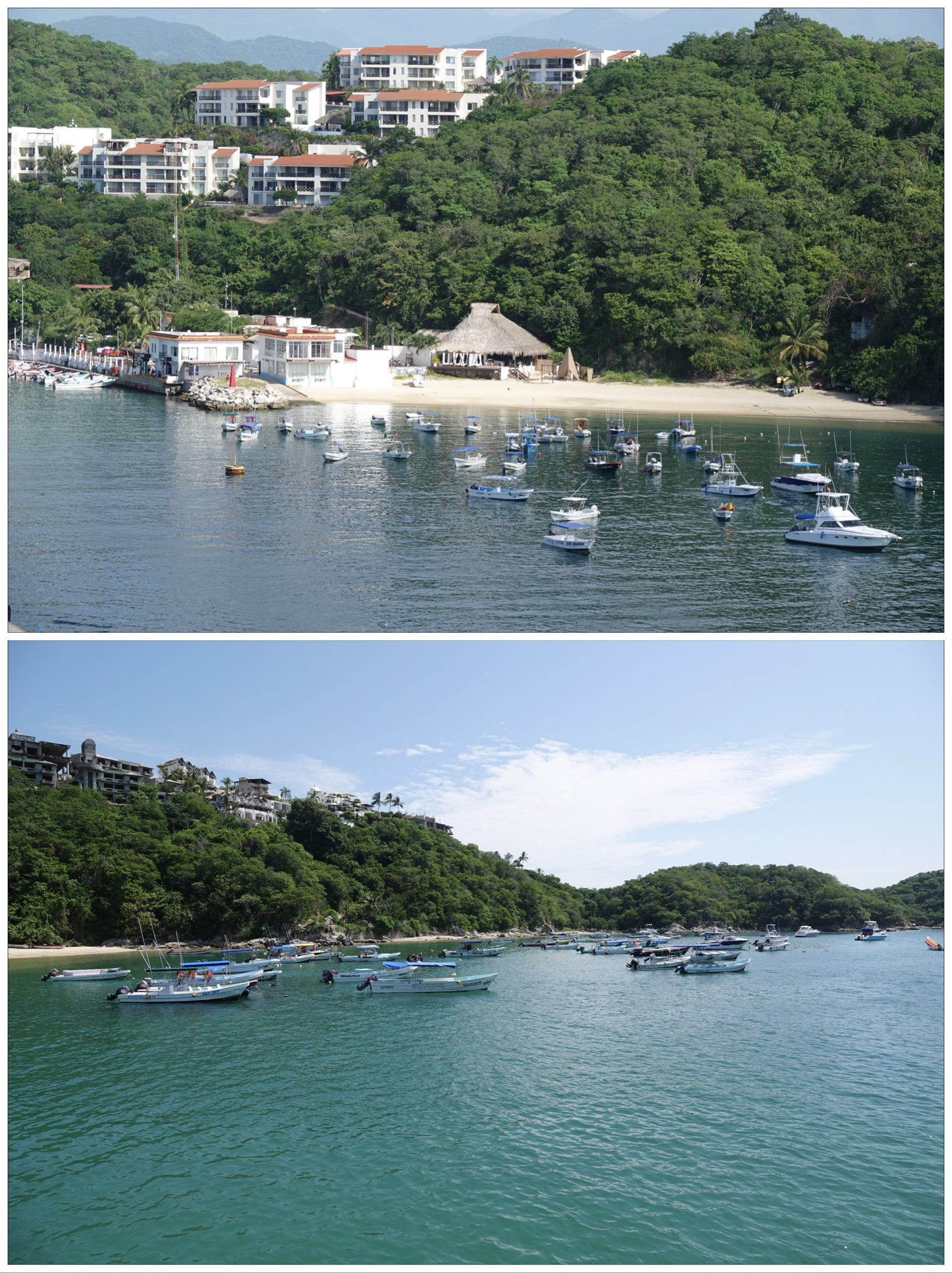 Arriving in Huatulco, a port we’ve never visited before, I was struck by how pretty it is. There are rocky crags along 22 miles of jagged coastline, pristine sandy beaches, green hills lush with trees, and a lagoon-like area full of small colourful boats. The waters are as crystal clear as anything we’ve seen in the Caribbean or Mediterranean.