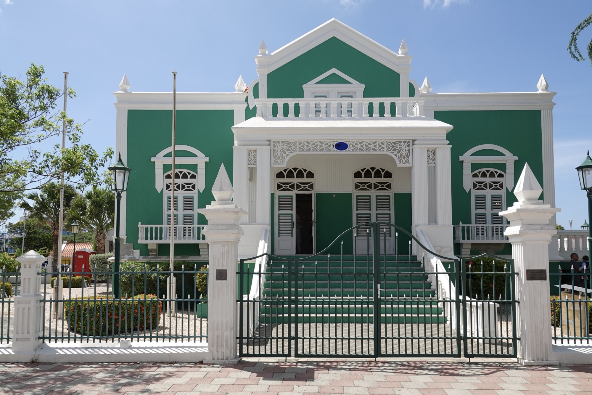 Currently, civil marriages are performed daily at this charming mansion. The elegant detailing and ornamentation are quite unique, reflecting different styles, making it one of the most iconic images of historic Oranjestad.