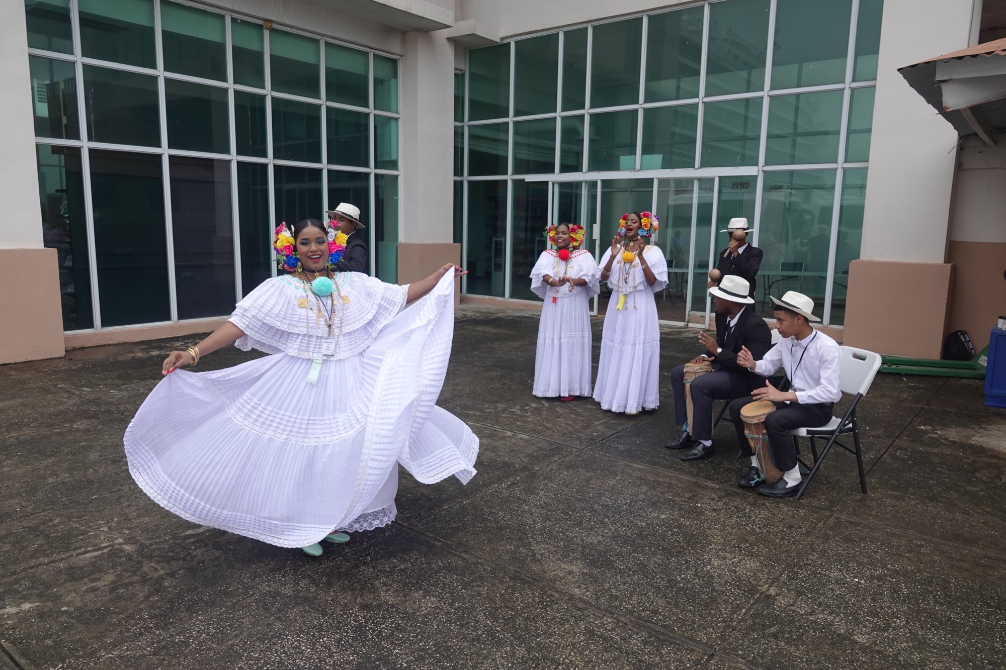 We sailed into Colón under overcast skies, with scattered thundershowers predicted all day, and a humid high of 27°C/80°F. Umbrellas were the order of the day, since in this humidity a raincoat just sticks uncomfortably to the body… but our cruising luck held; for the first time in 6 straight days (according to our tour guide) there was no “liquid sunshine”.