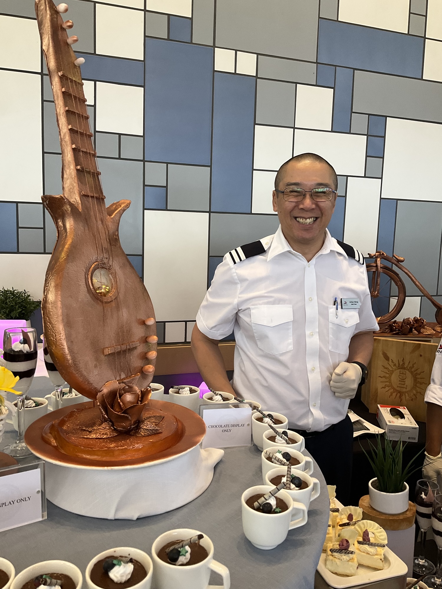 After that cheesecake lunch, followed by cocktails and canapés, we opted for a light supper in the World Cafe before the evening’s production show “Duets”.