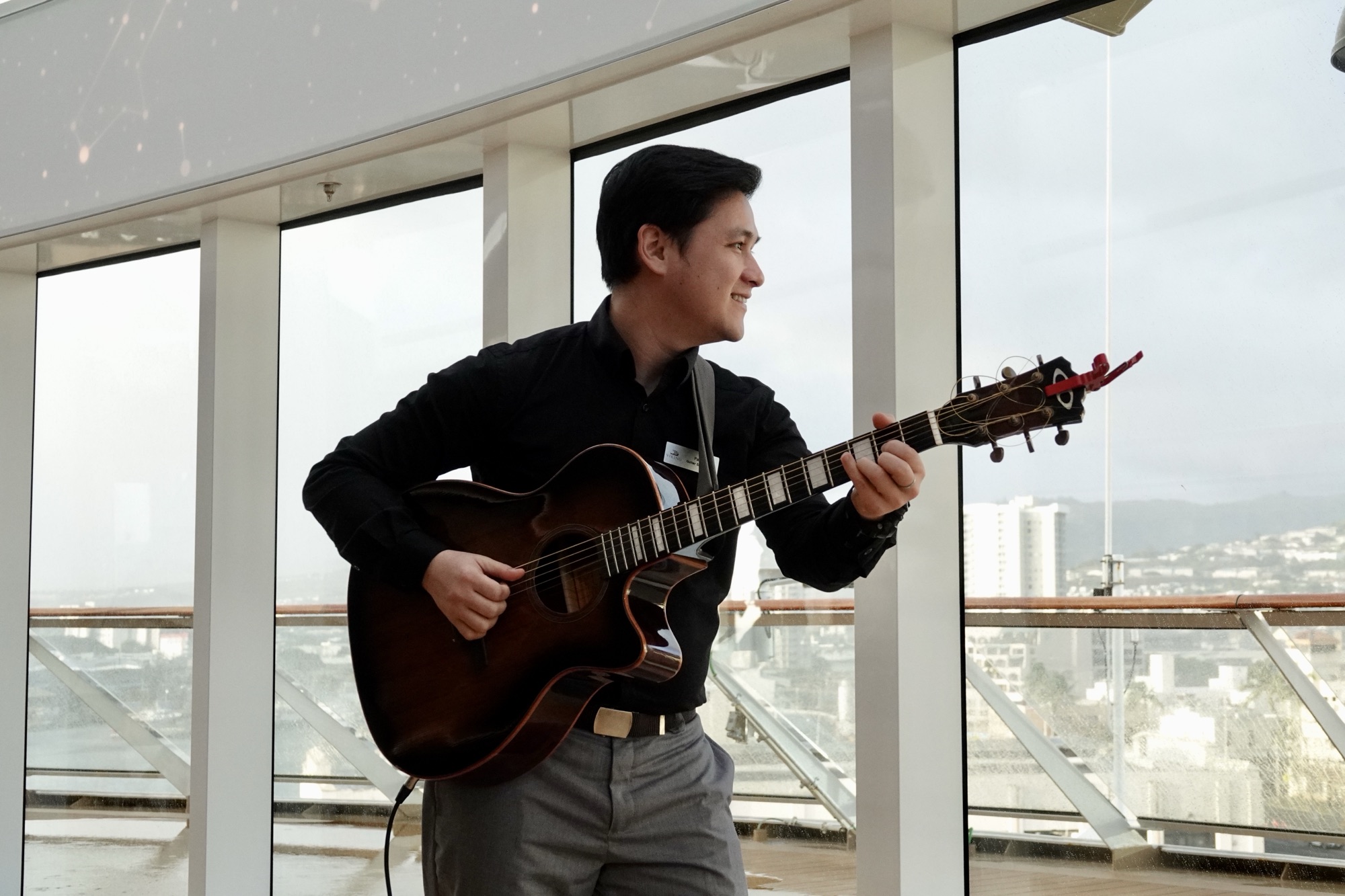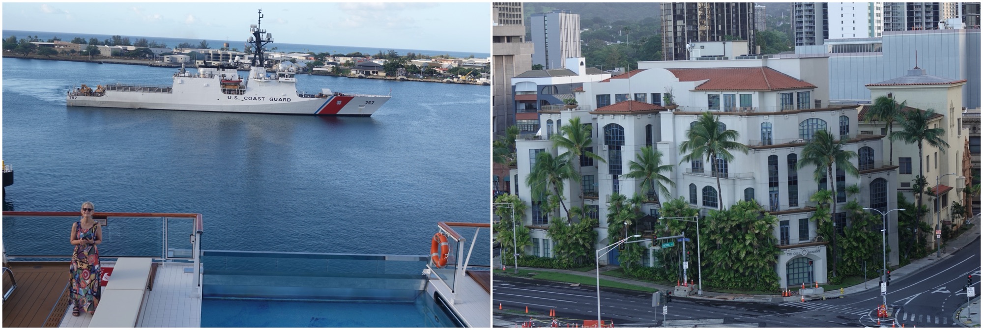 We were in port until 10:00 p.m. so could have stayed in Honolulu for the evening, but Viking had a “destination performance” planned, featuring Polynesian dancers and drummers, that we didn’t want to miss, plus we’d done enough walking and I wanted to get started on choosing photos and writing the blog. Being able to have an Aperol Spritz and listen to Paolo’s guitar were added bonuses.