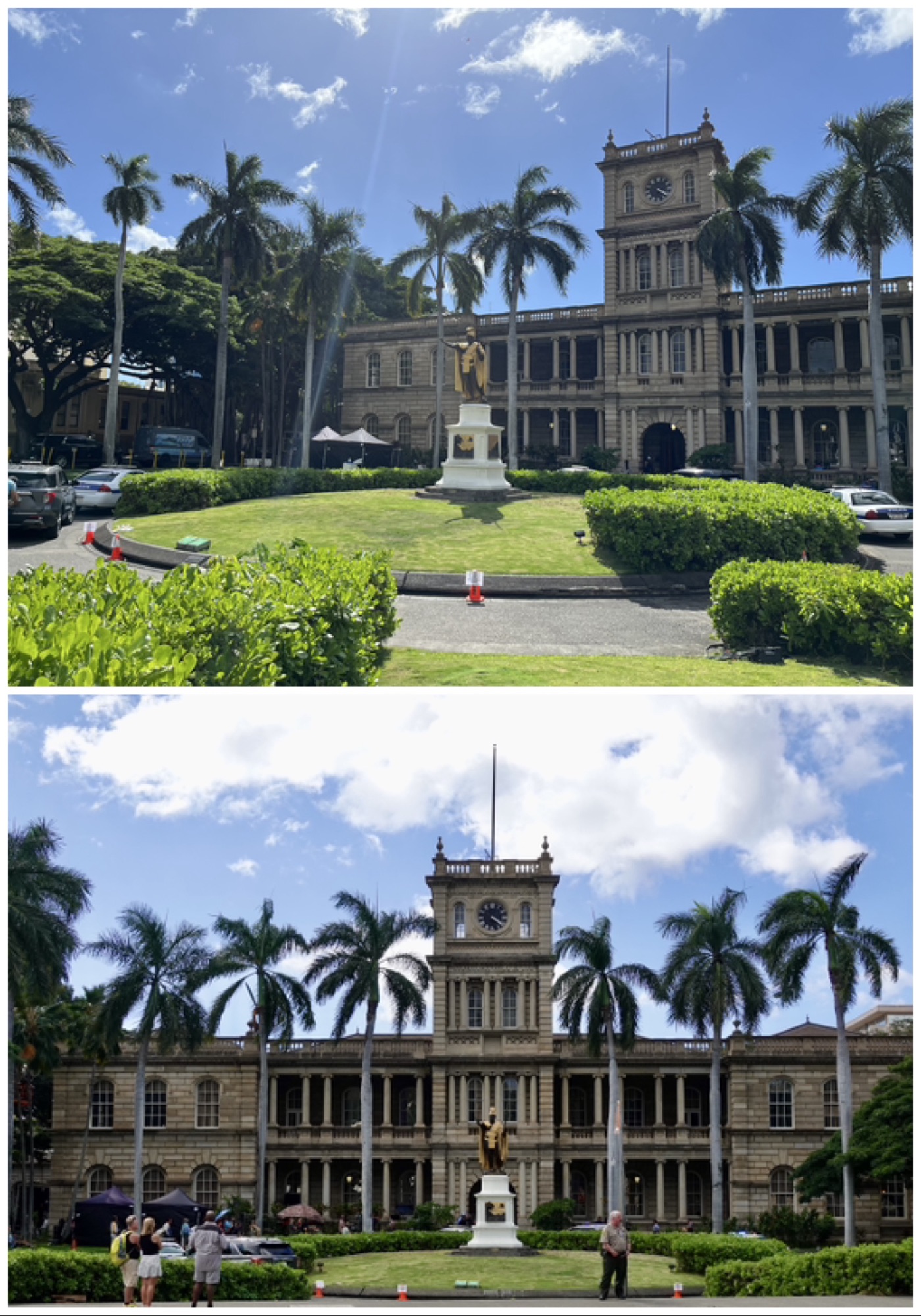 Aliʻiolani Hale, home to the Hawaiian State Supreme Court, was originally intended to be the royal palace, but Kamehameha V designated it as the nation’s courthouse, and Iolani Palace became the royal residence.