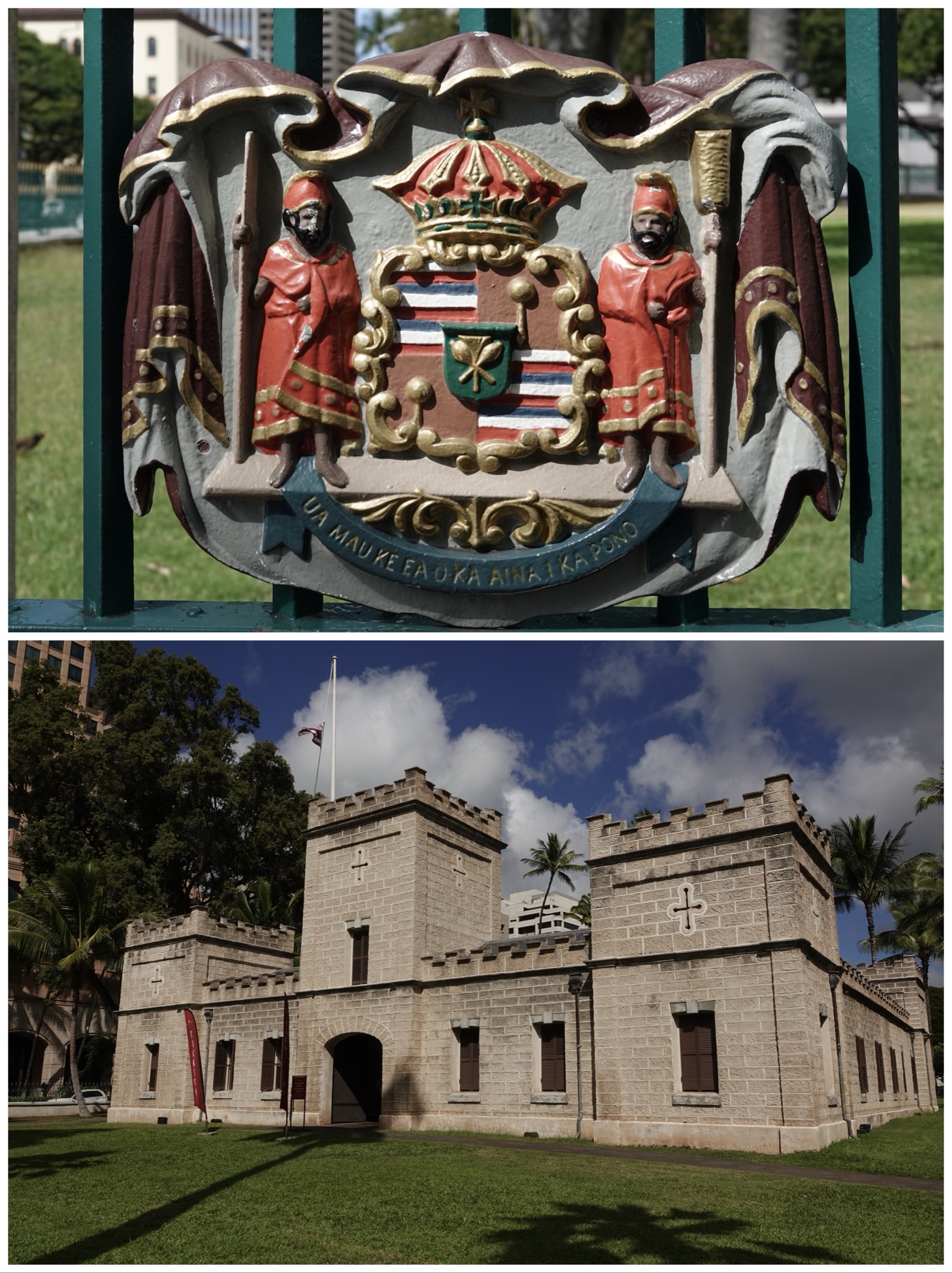 Bottom: the Iolani barracks, which are now a visitor center.