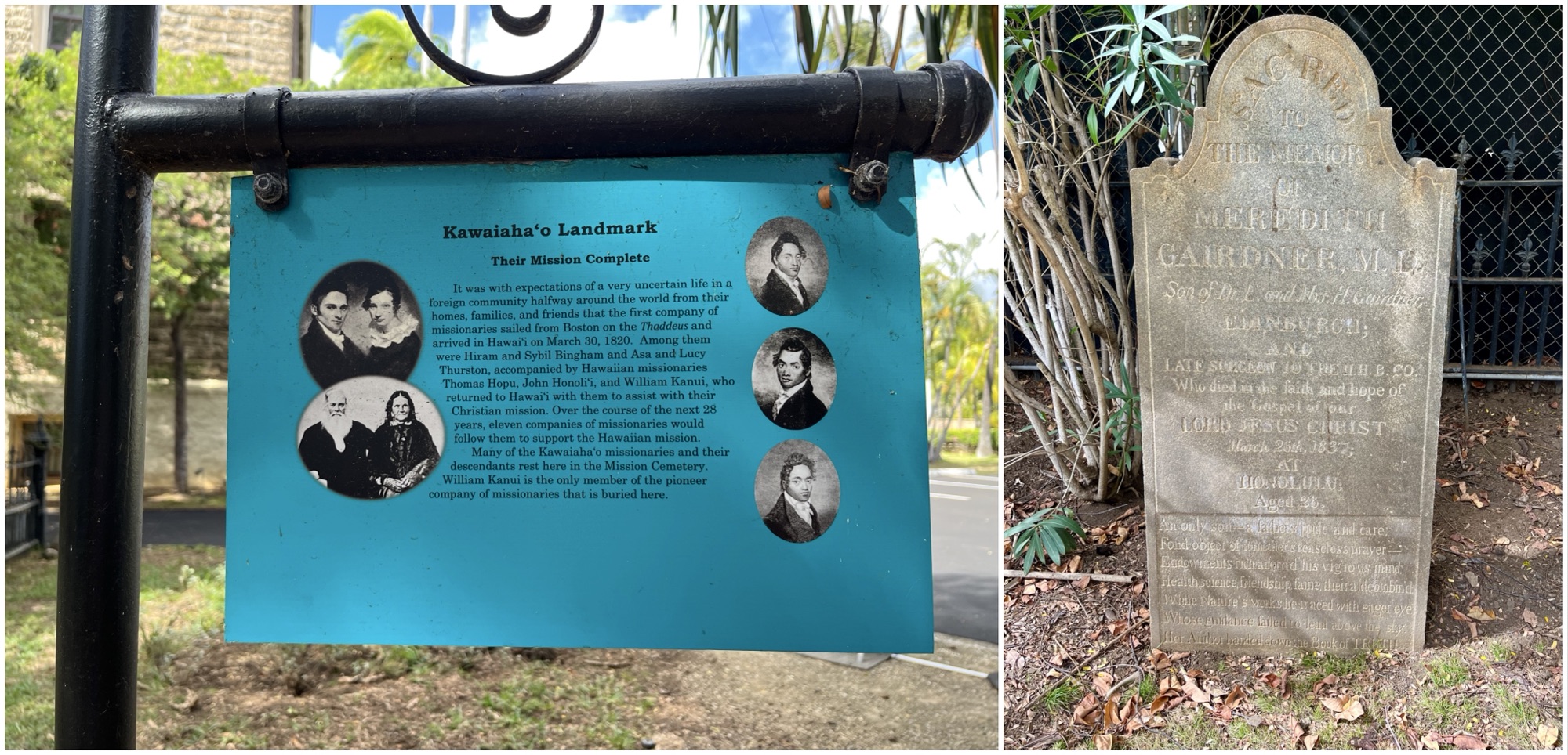 Kawaiaha’o Church (the “Mission Church”) is located a short walk from the palace. The adjacent cemetery is the final resting place of many of the early Christian missionaries who came to “save” the Hawaiians. I’ll admit to having a very biased view of their years here, based almost solely on James Michener’s epic novel “Hawaii”.