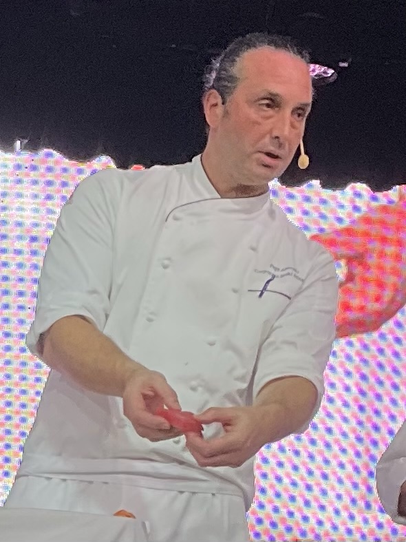 Our afternoon was low-key, with me mostly reading and chatting and Ted getting in his laps of deck 2, but at 4:30, there was a cooking demonstration in the Star Theater, featuring Guest Chef Pepi Anevski, that I was determined not to miss.