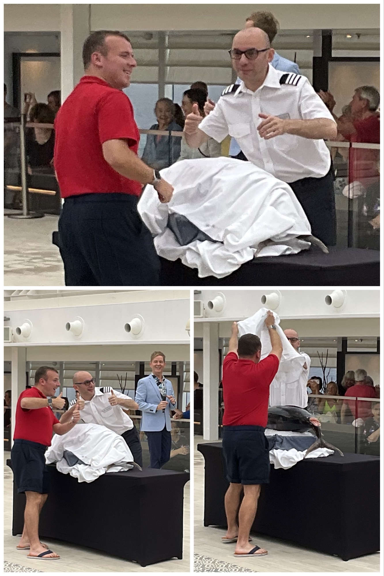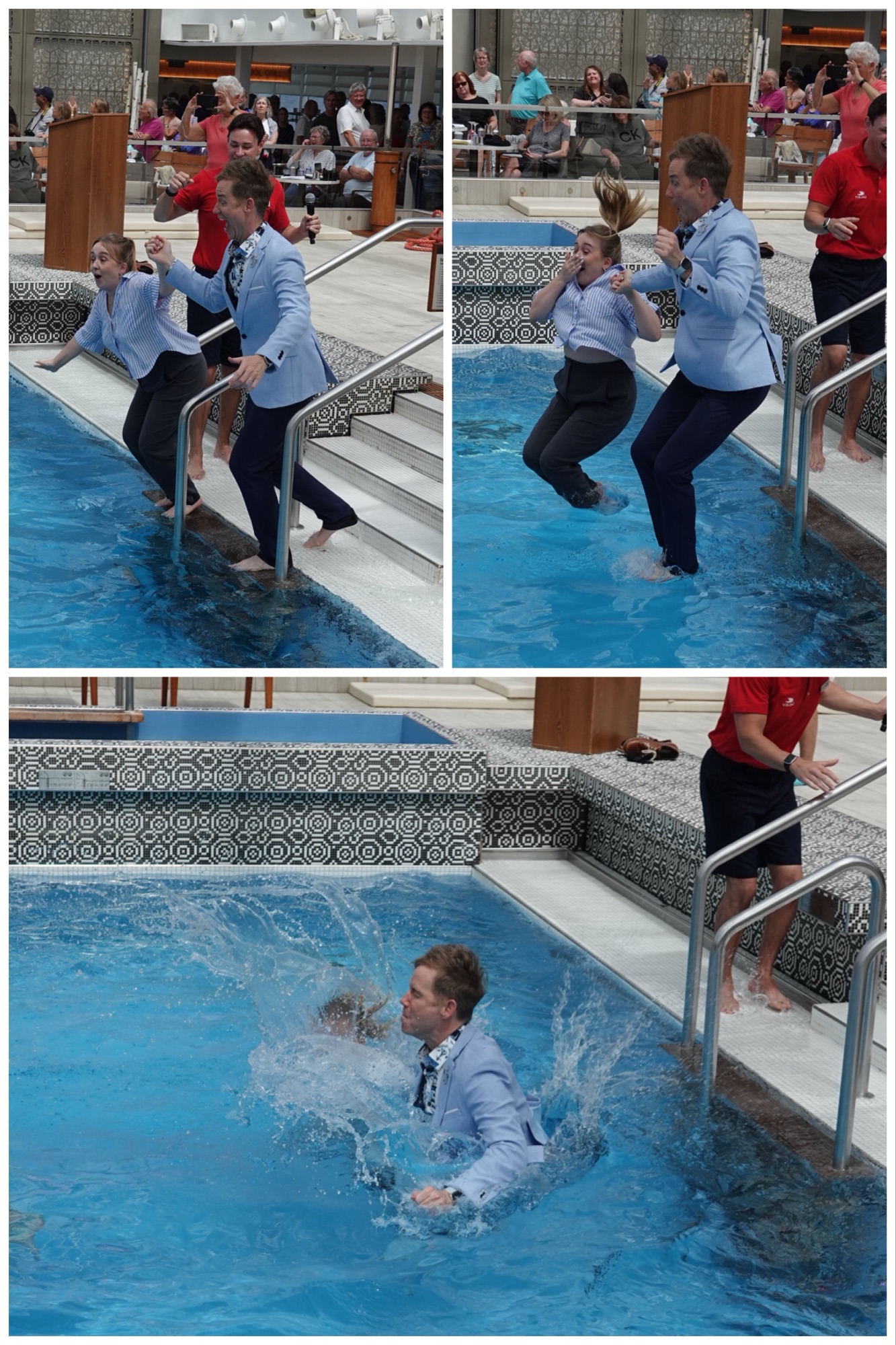 Cruise Director Matt and Assistant CD Tara also gamely took part, although neither of them are pollywogs.
