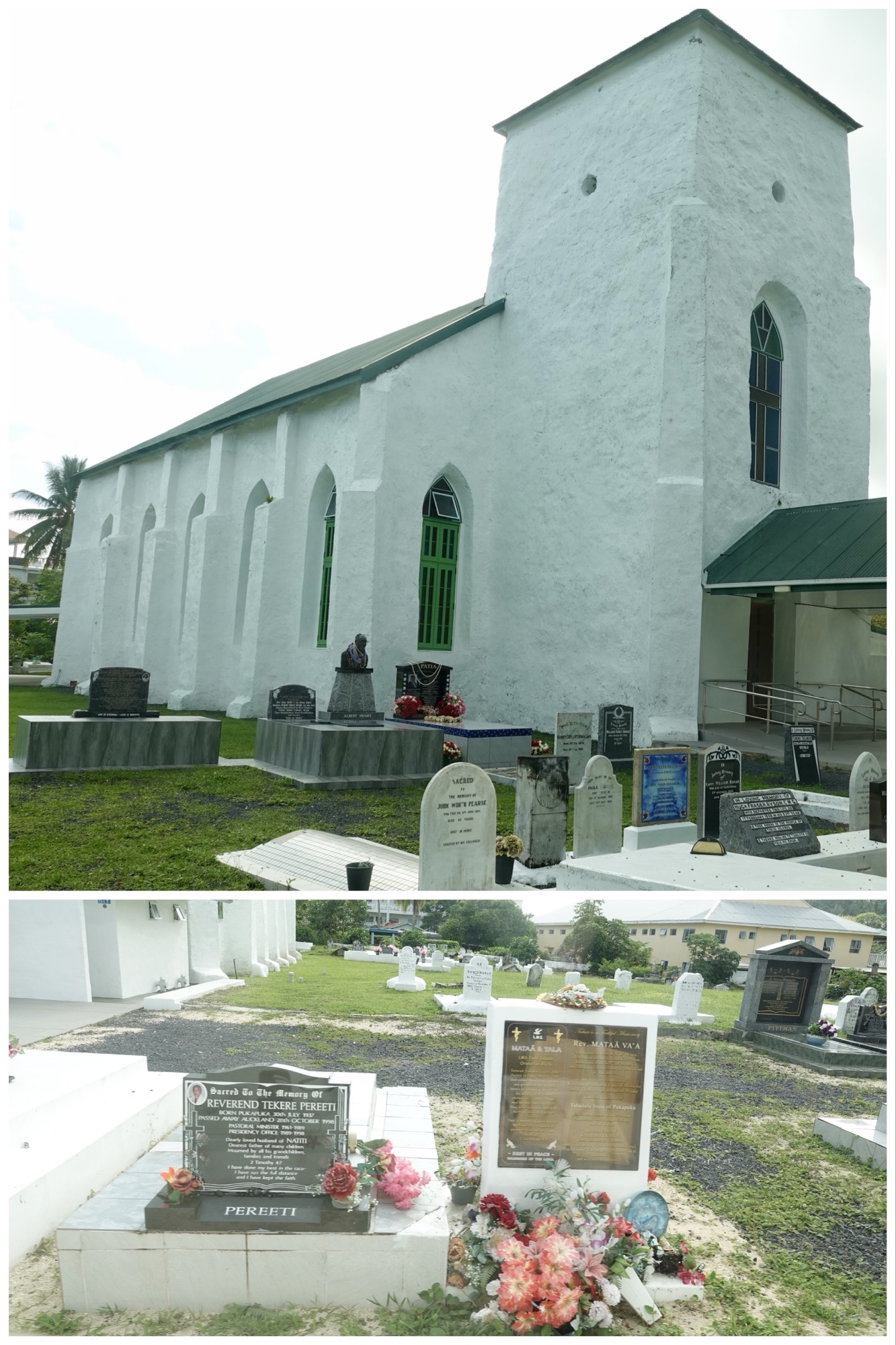 We passed by several churches of various Christian denominations. The Cook Islands recently celebrated the 200th anniversary of Christianity being brought to the islands, which our guide credited with ending both polygamy and cannibalism here. Each church had an adjacent cemetery, but only those involved in the (church) ministry or high-ranking people are buried here. Most people are interred on their own family’s land, in what are sometimes quite elaborate graves with shelters around them.