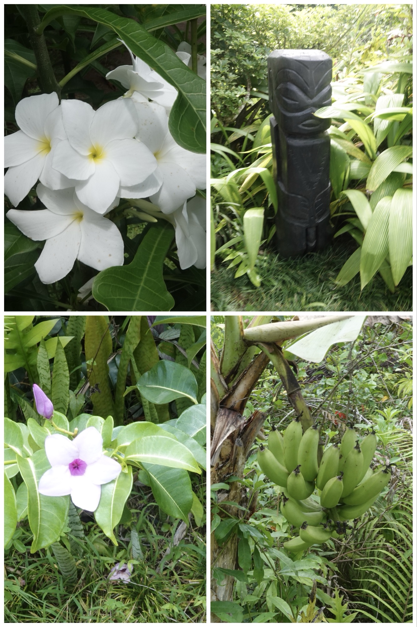 We were also treated to a riot of colourful and delicately scented flowers growing wild: gardenias, tiare Maori, hibiscus, bougainvillea, frangipani, red flame trees, lobster claws, ginger flowers, and plumeria.