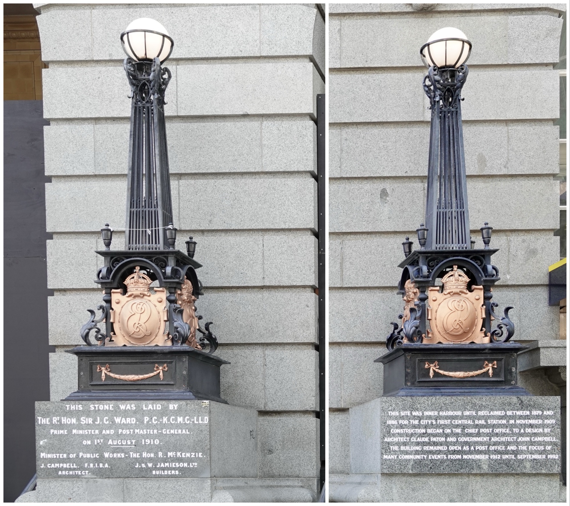 The Auckland ferry building (below) is a lovely example of English Baroque architecture, and particularly interesting when seen from the waterfront, juxtaposed with the modern construction.