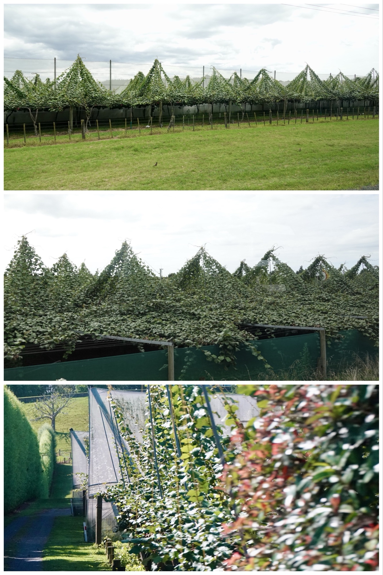 Te Puke is the kiwi fruit capital of the world, but this is not where kiwi fruit originated. The seeds were brought from China in 1904 (called “Chinese gooseberries”) and flourished in New Zealand’s volcanic soil. The vines set up their own deep root system and do not need to be watered! Three kinds grow here: Hayward (the familiar fuzzy-skinned green ones), golden (with smooth skins and 3X as much vitamin C as an orange), and red (recently developed mostly for Asian markets).