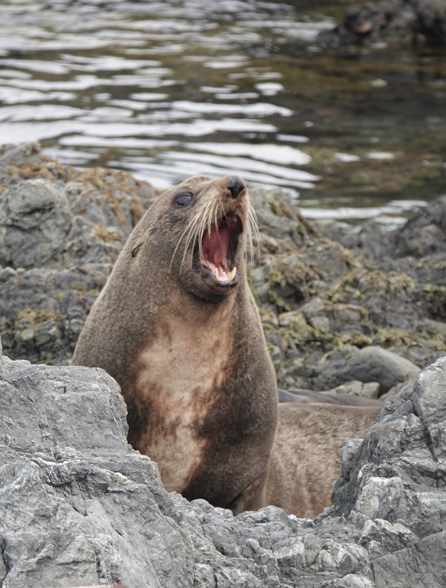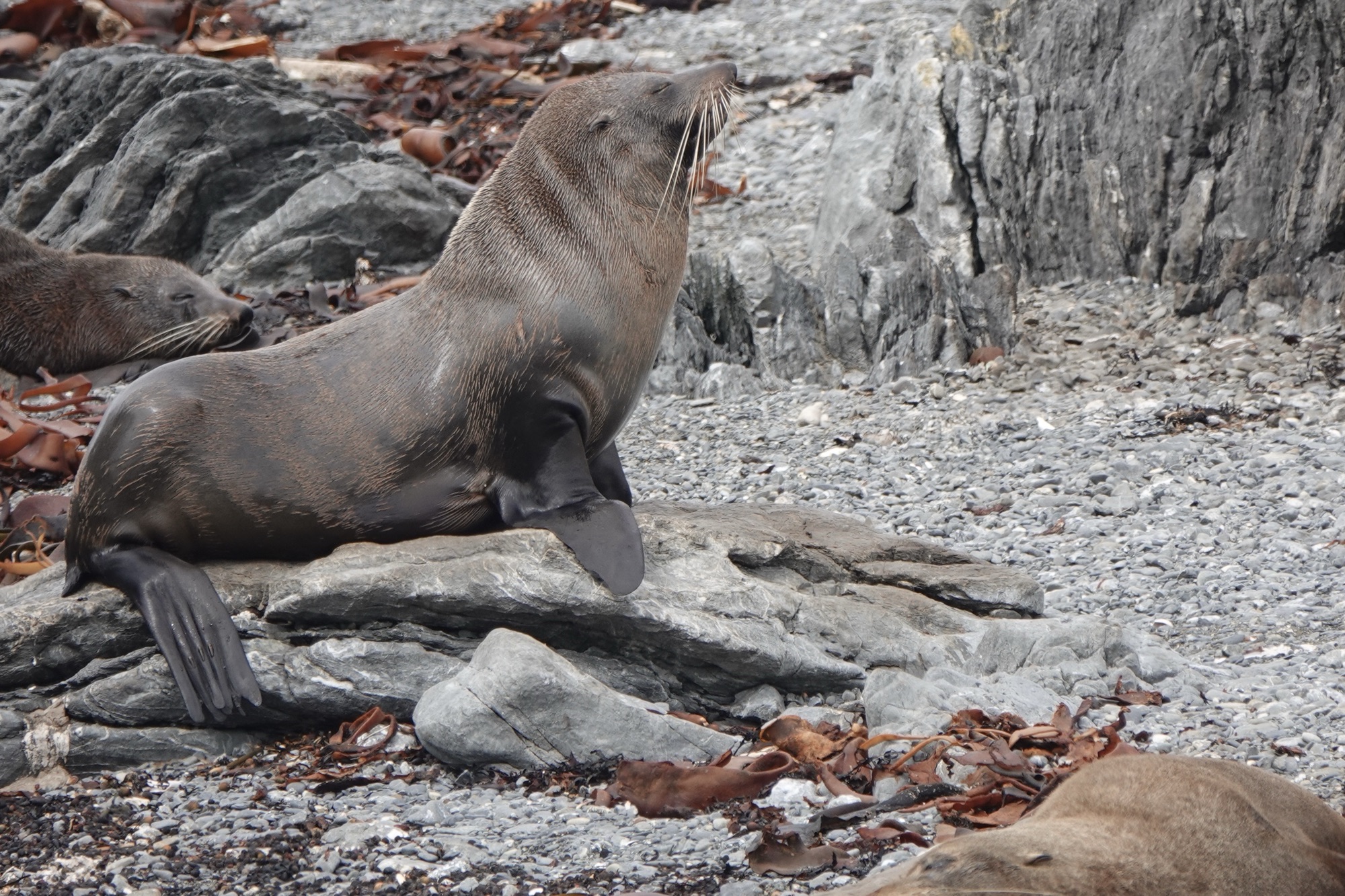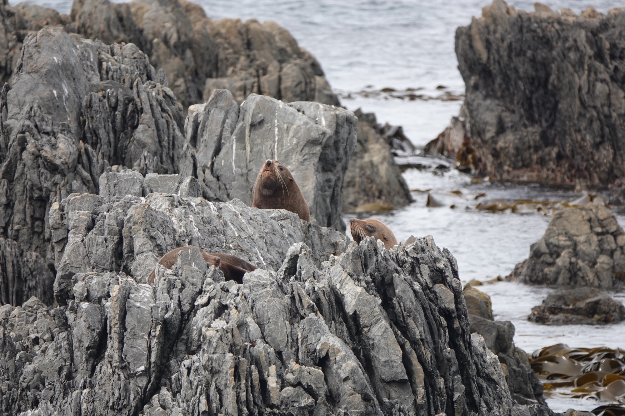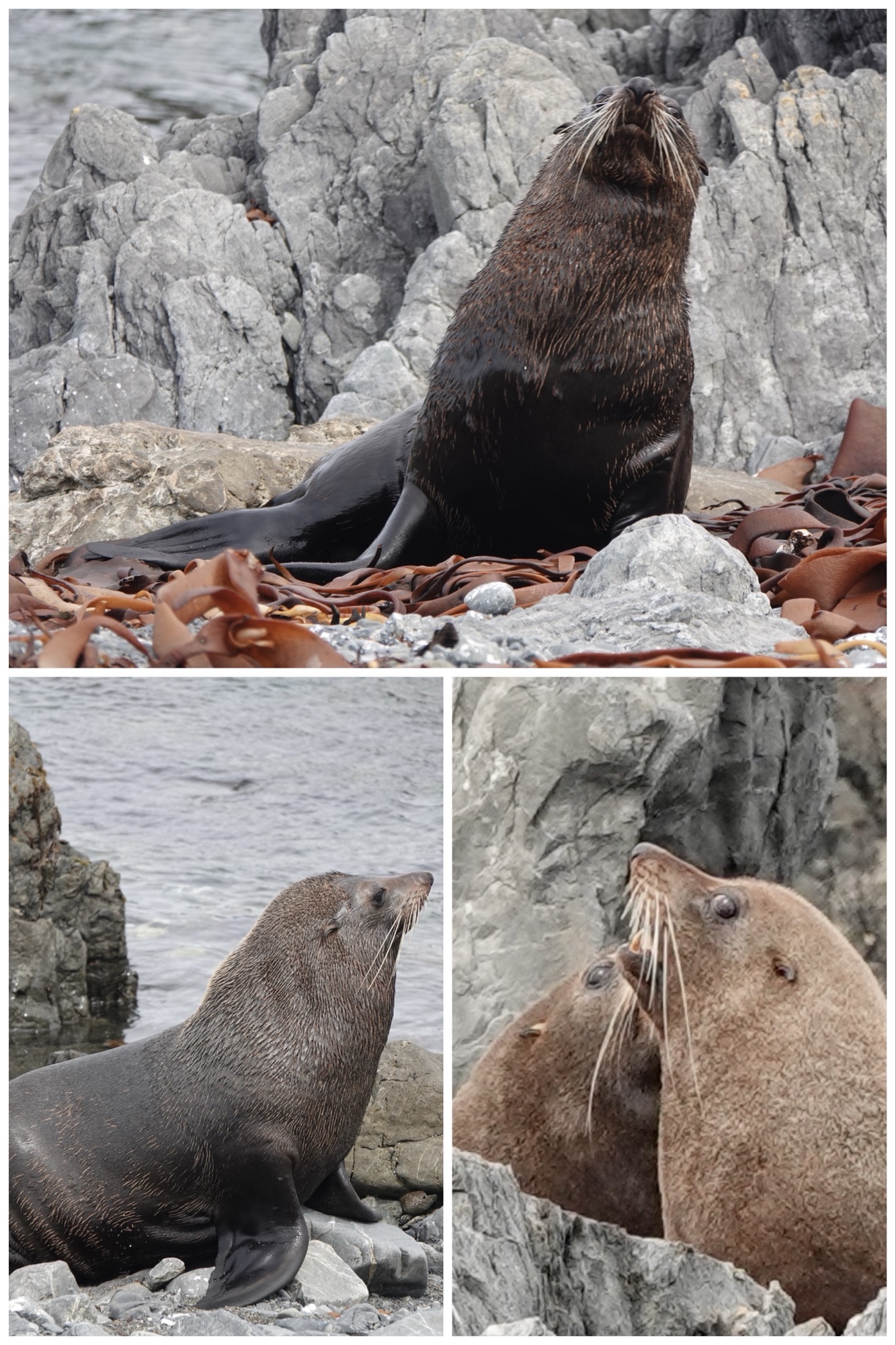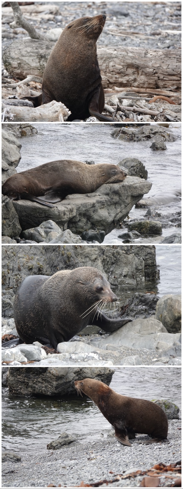 The rules in New Zealand are that you must stay 20 metres/65 feet away from the seals. They are very territorial, and if you get close they’ll feel threatened and roar at you. Our guide pointed out that they can move faster than you’d think, and can bite – or even kill – humans. He also pointed out that fur seals are a lot like cats, and even though they “can” do those things, “they can’t be assed to”. His words and colourful Kiwi colloquialism for “can’t be bothered, not mine.