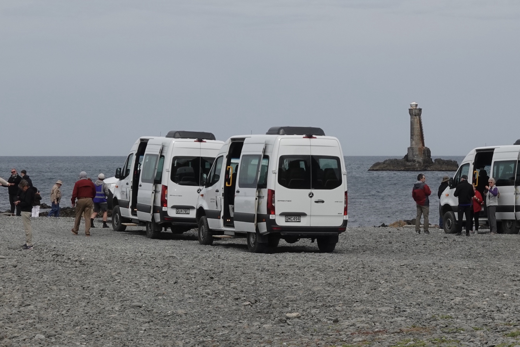All three vans (with ours in the lead) made it safely to the coast. The stones underfoot (and under tires) were all smooth river rocks, to a depth of at least 45 cm/18 inches.