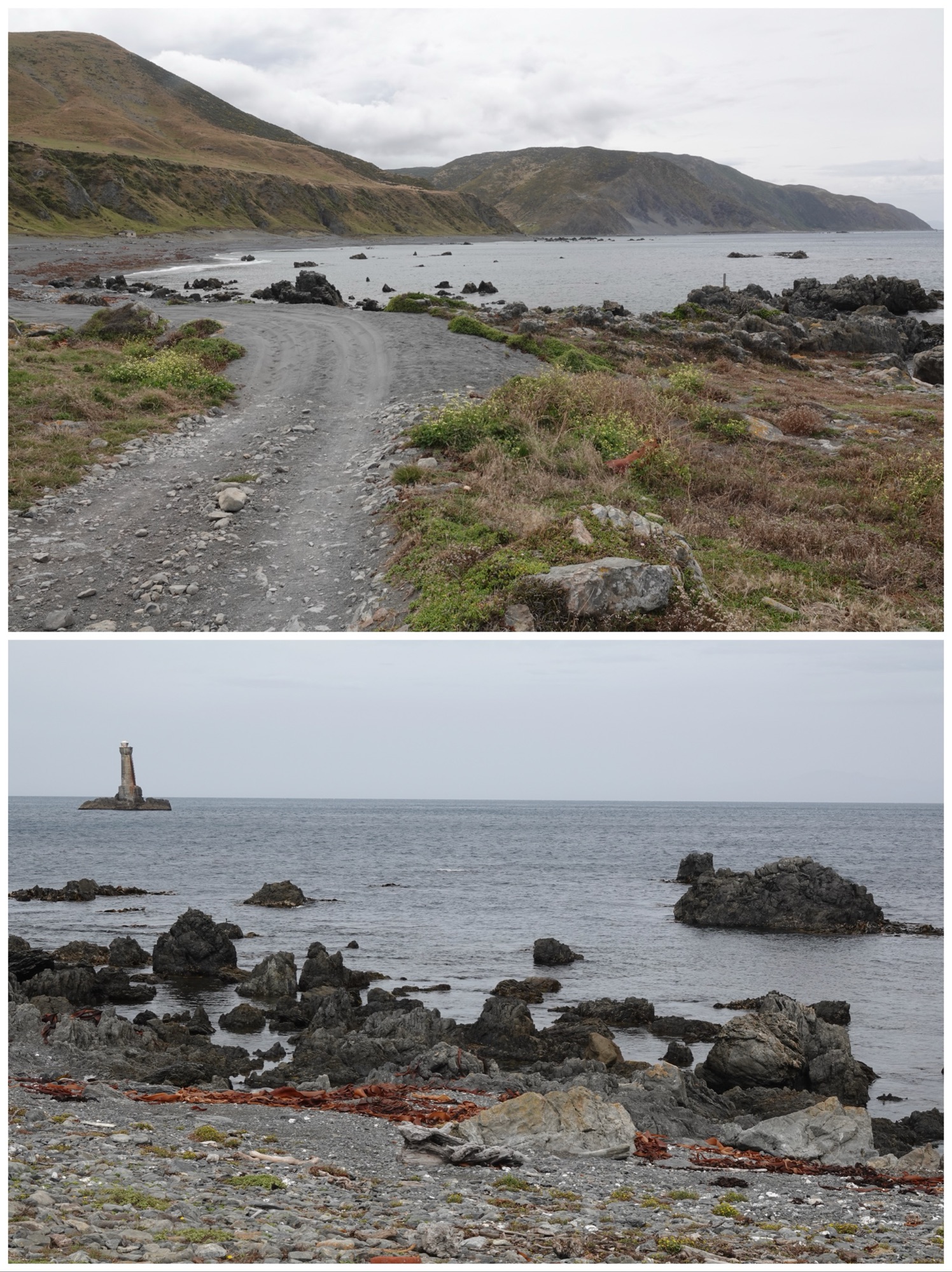 In order to reach Tongue Point, we accessed – by special permission – a roadway leading through a private “station” of 13,000 acres in Mākara, west of Wellington. It was explained to us that in New Zealand a farm of over 10,000 acres dedicated to the grazing of sheep or cattle is called a station or run, and cannot be subdivided for sale. The use of that word for the farm or farm buildings dates back to the mid-nineteenth century. The owner of a station is called a runholder.