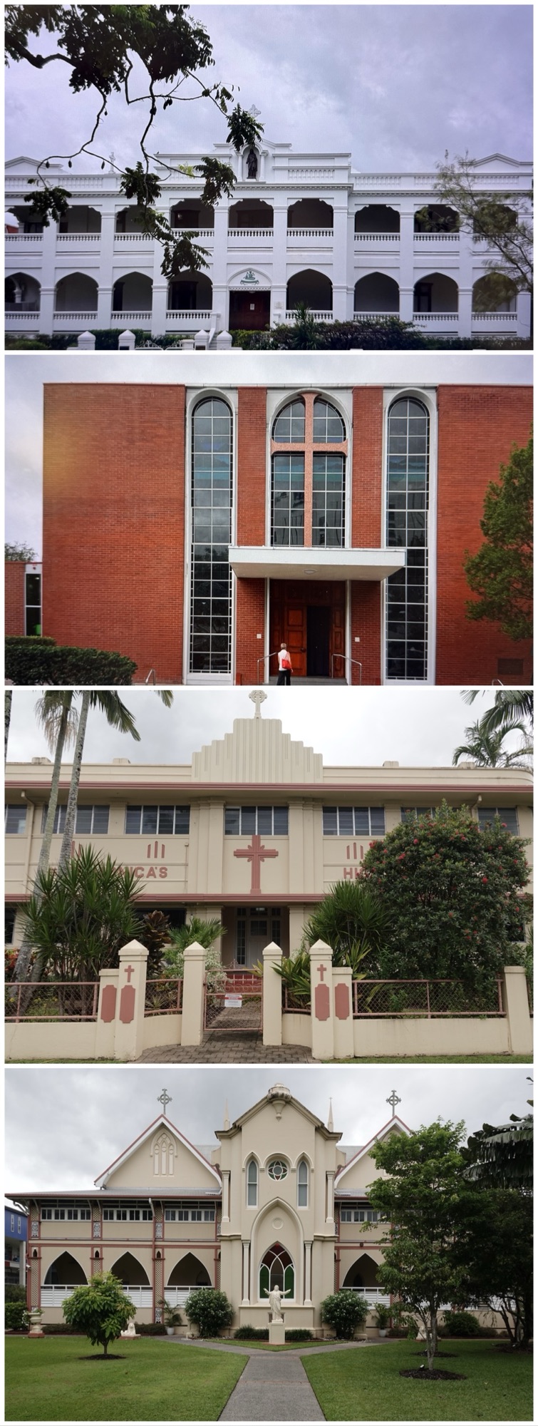 When we’d walked as far along the esplanade as we wanted, we turned around and headed back toward the ship, but walking along Abbott Street. That’s where we noticed the impressive Bishop’s House, and beside it Saint Monica’s Cathedral, girls’ residential high school, and college (in order from top to bottom in the photo below).