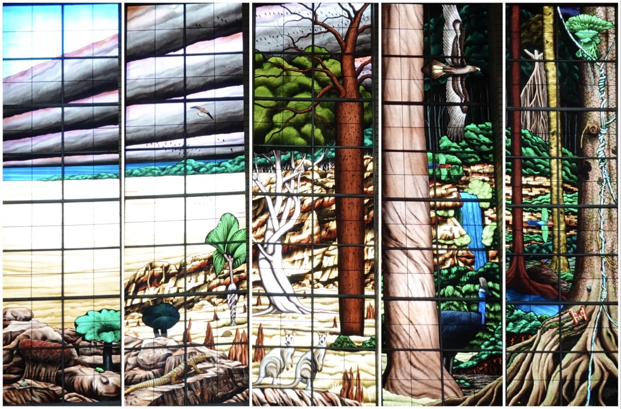 By windows 15 and 16 there are waterfalls, by number 17 more birds and mammals (we could identify a parrot, a possum, koala, kookaburra, and platypus – plus a staghorn fern!)